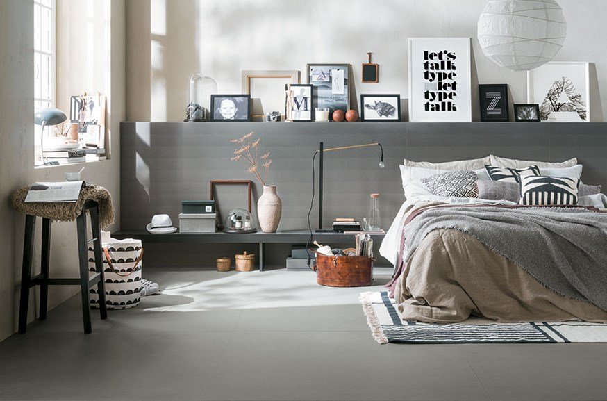Gạch ốp vân xám Torino cho sàn nhà, khi đi cùng với các đồ nội thất gỗ sẽ mang một không gian ấm áp, thoải mái cho phòng ngủ của bạn.
