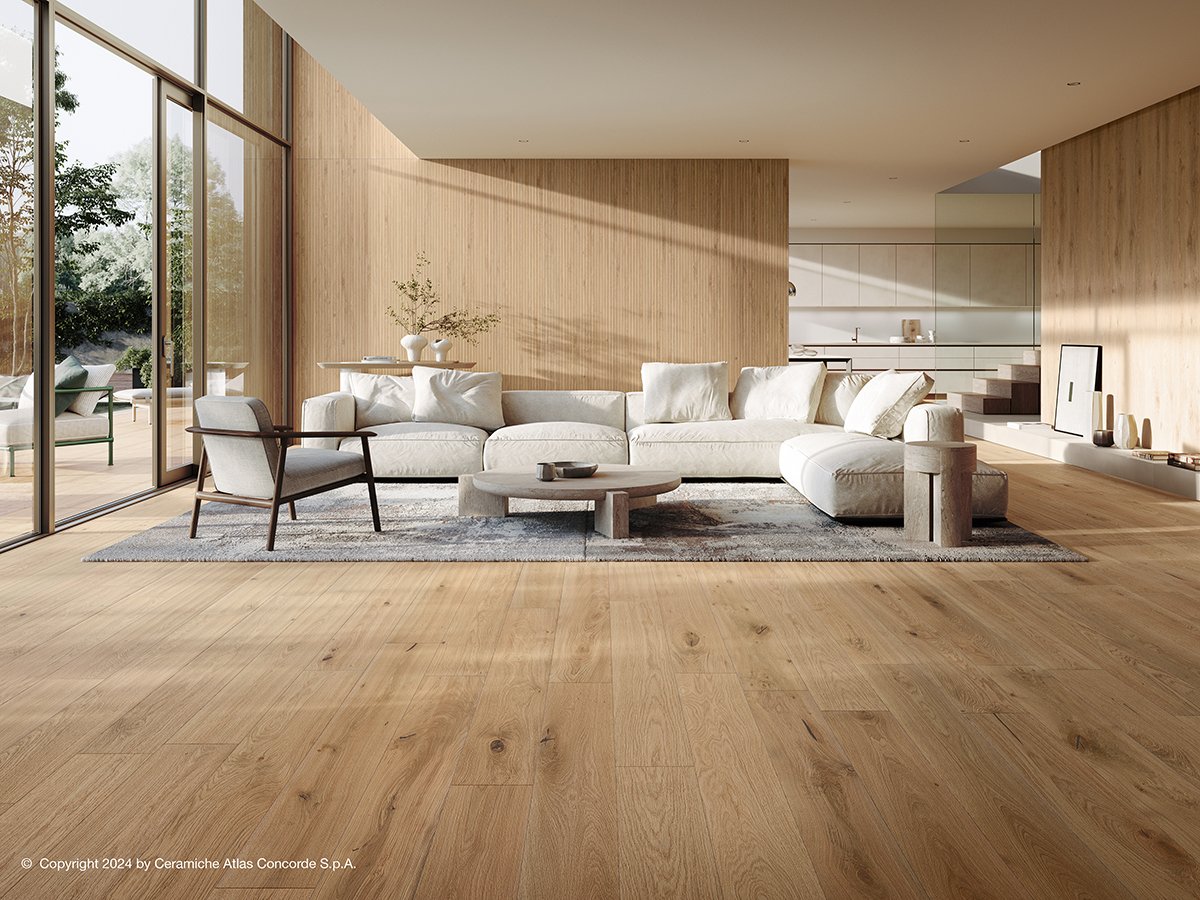 Log là bộ sưu tập được đỡ đầu bởi Itlas, đơn vị hàng đầu về gỗ tại Ý. Mang theo tình yêu sâu sắc với gỗ, Itlas đã nghiên cứu mỗi chi tiết vân gỗ và mắt gỗ của Log để đảm bảo độ hoàn thiện cao, tái hiện gần như hoàn hảo gỗ sồi tự nhiên. Không chỉ lý tưởng cho phong cách cổ điển lẫn đương đại, Log còn là những mảnh ghép kết nối gia chủ với thiên nhiên.