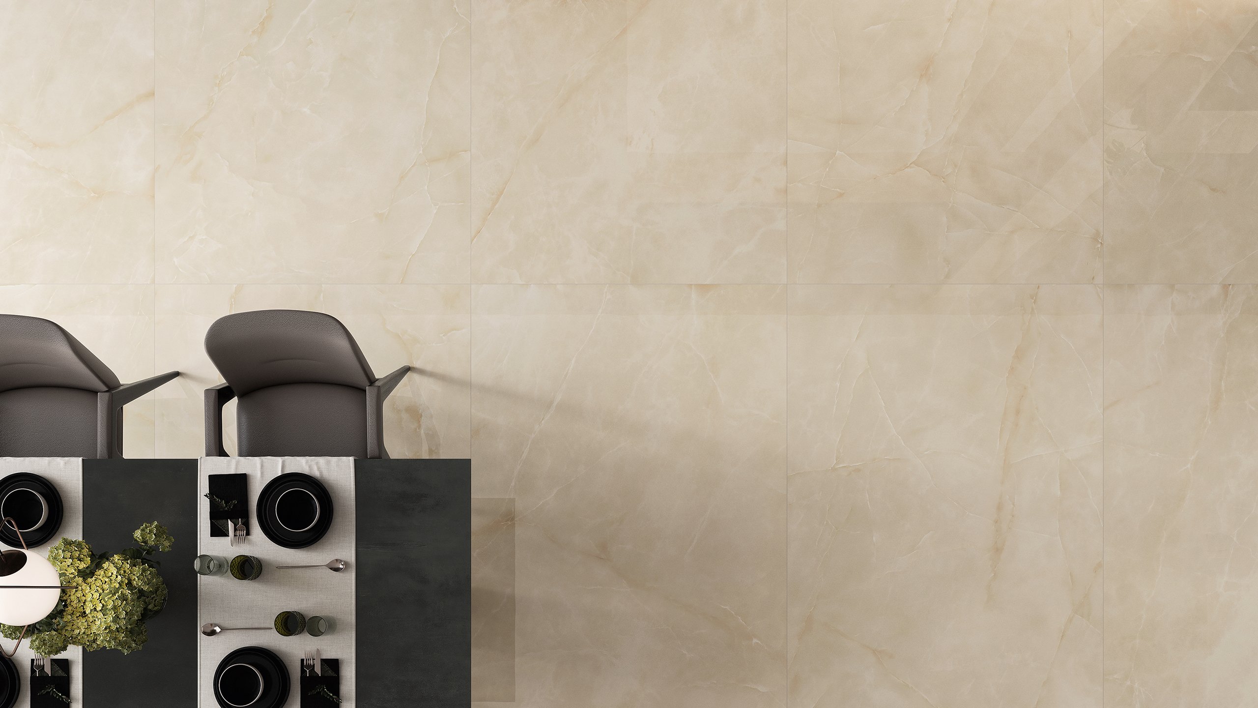 Marvel Onyx có hai phiên bản lấy cảm hứng từ màu sắc tự nhiên của đá Onyx tự nhiên: màu trắng ngà Alabaster thanh lịch và màu cát Pearl cổ kính. Mỗi phiên bản đều có độ trong cao, hiện rõ vân Onyx mềm mại, hứa hẹn vẻ đẹp sang trọng cho không gian.