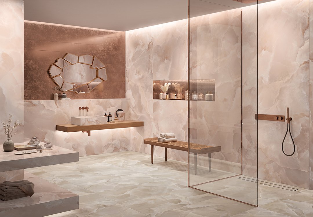 Phòng tắm giờ đây được thiết kế như một spa tại gia, nơi giải tỏa căng thẳng cho gia chủ sau ngày dài. Vietceramics mang đến các bộ sưu tập gạch chống trượt an toàn, cùng các gạch vân đá marble tinh tế hay gạch mosaic nghệ thuật, sẽ kiến tạo nên chốn riêng tư để bạn tận hưởng trọn vẹn sự thư giãn. Hoàn thiện thiết kế phòng tắm sang trọng với gạch ốp lát Vietceramics!