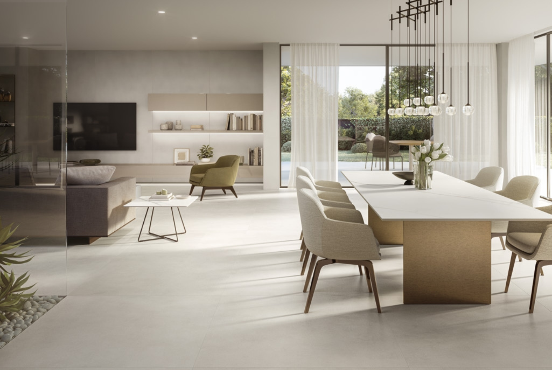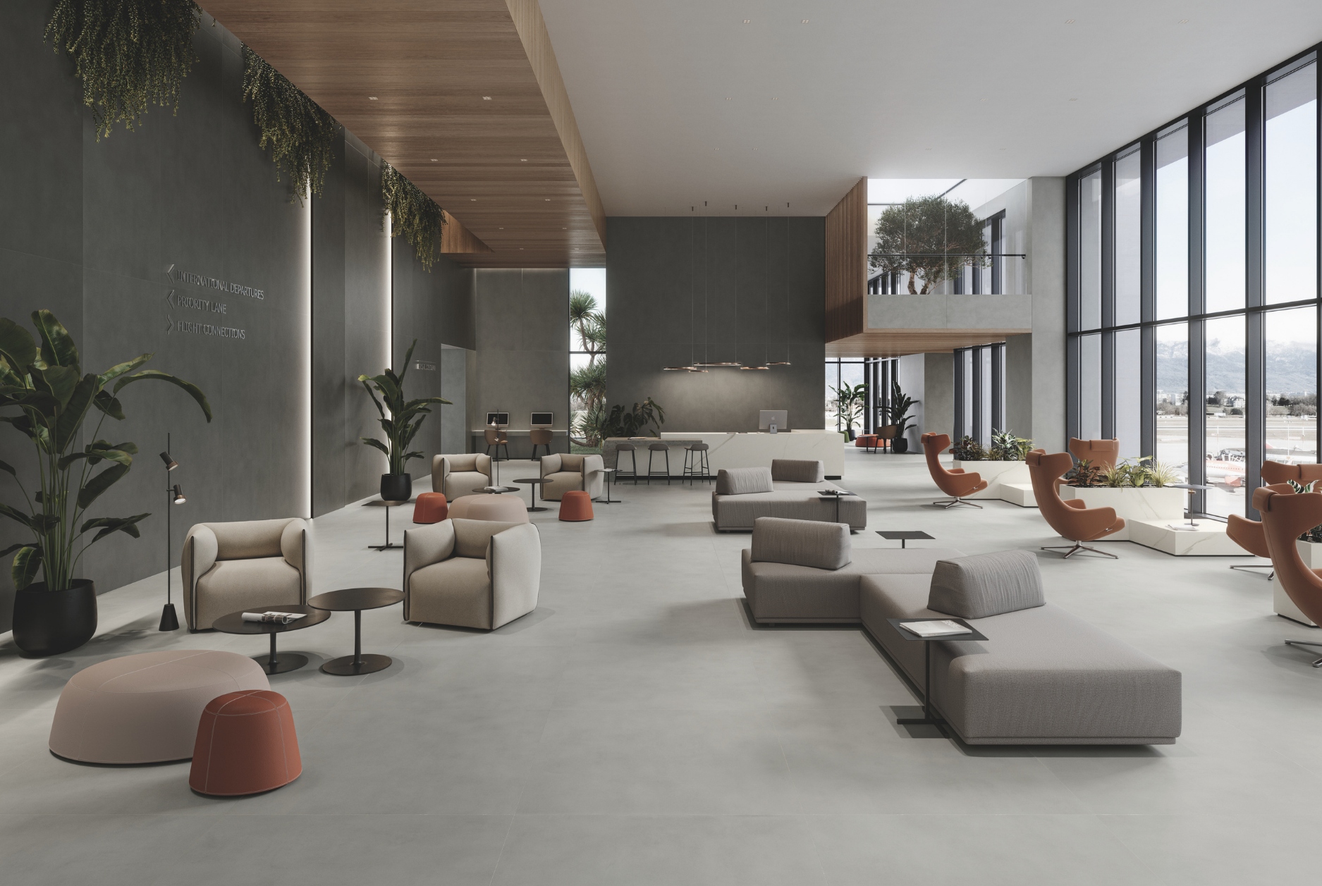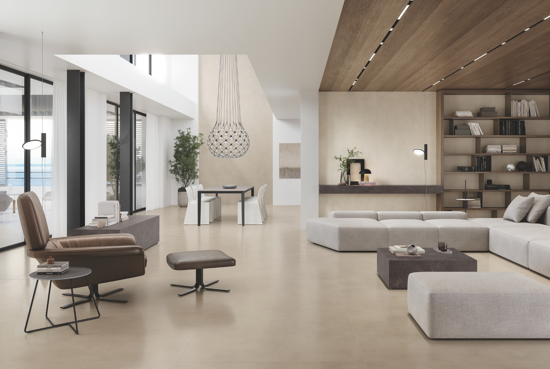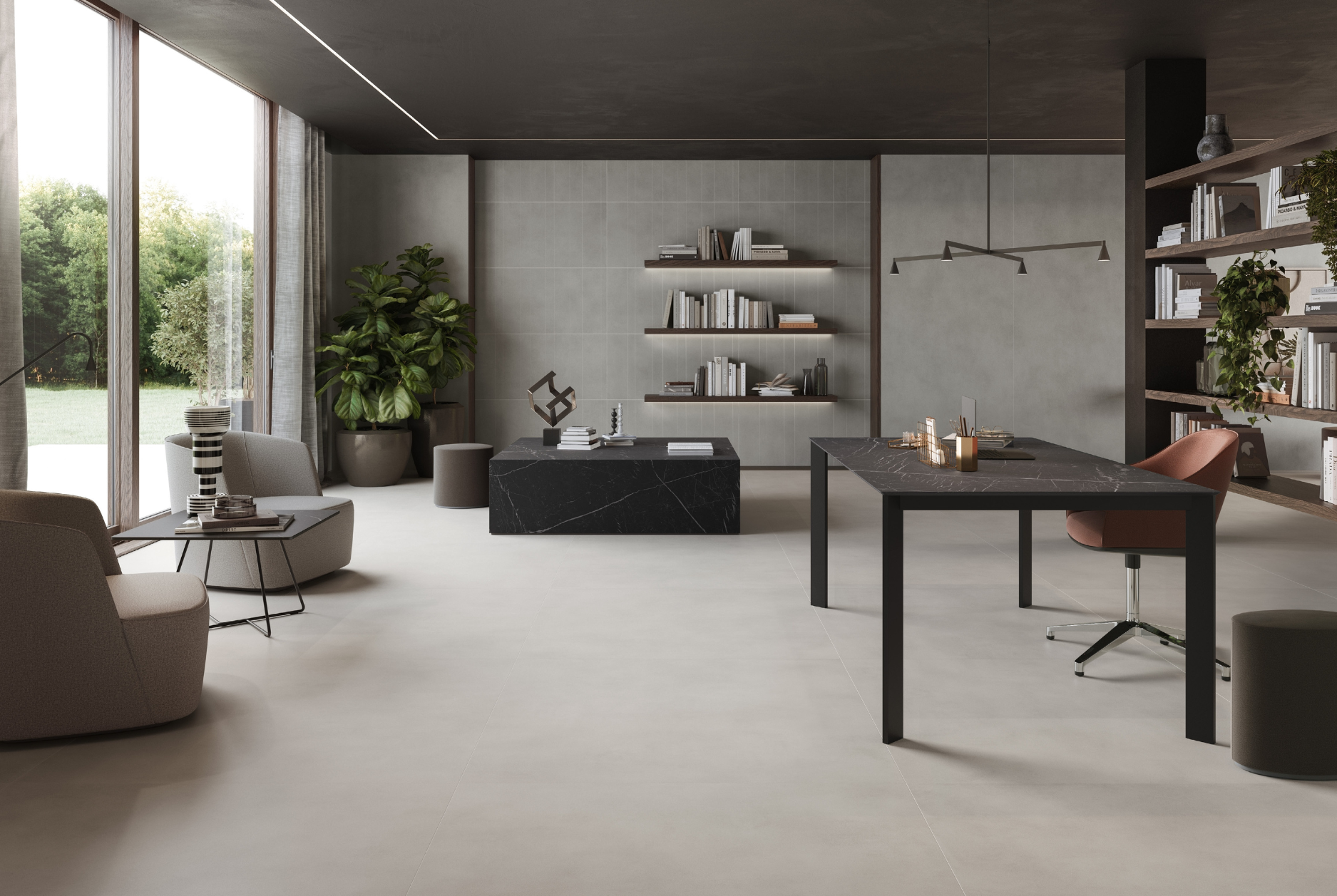 Microcement là cảm hứng của bộ sưu tập gạch vân đá Boost Balance. Bề mặt mờ mịn, đồng nhất sắc thái của bộ sưu tập tái hiện trực tiếp hiệu ứng xi măng siêu mịn, kết hợp cùng đường nét gọn gàng, tinh tế để đáp ứng nhu cầu cấp bách của gia chủ về một thiết kế tinh giản và linh hoạt.