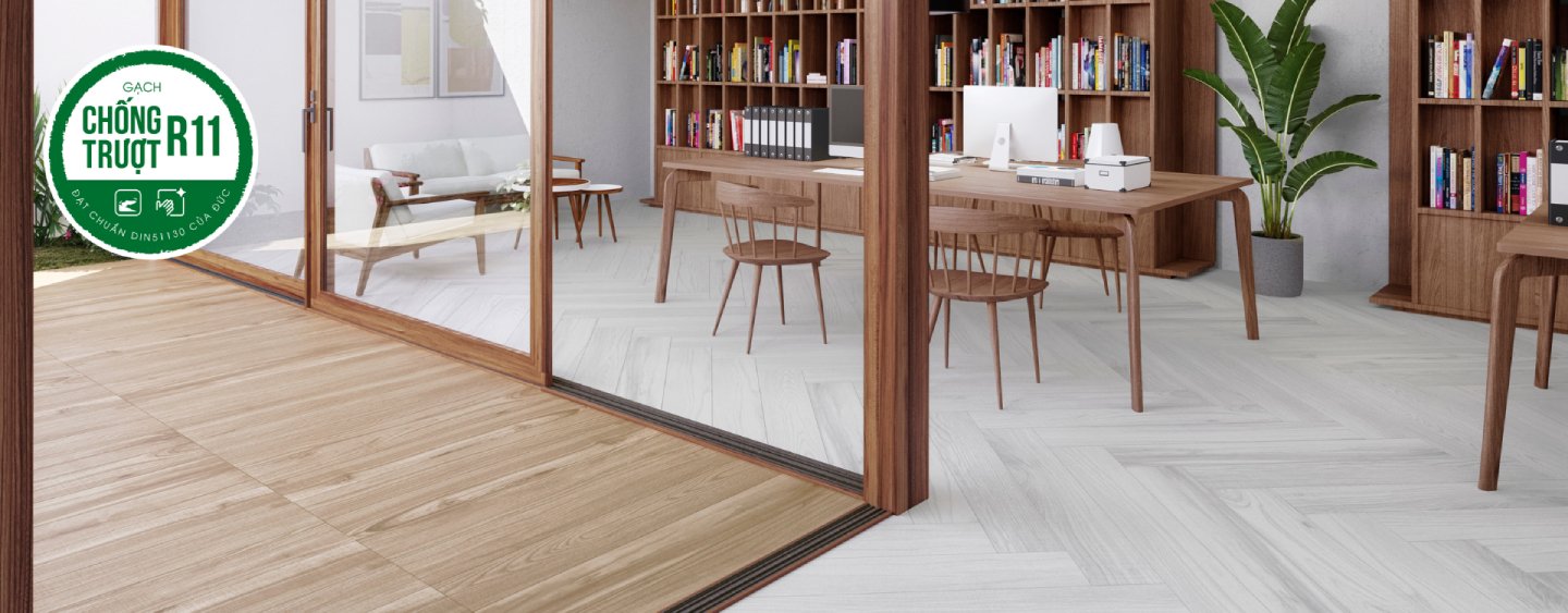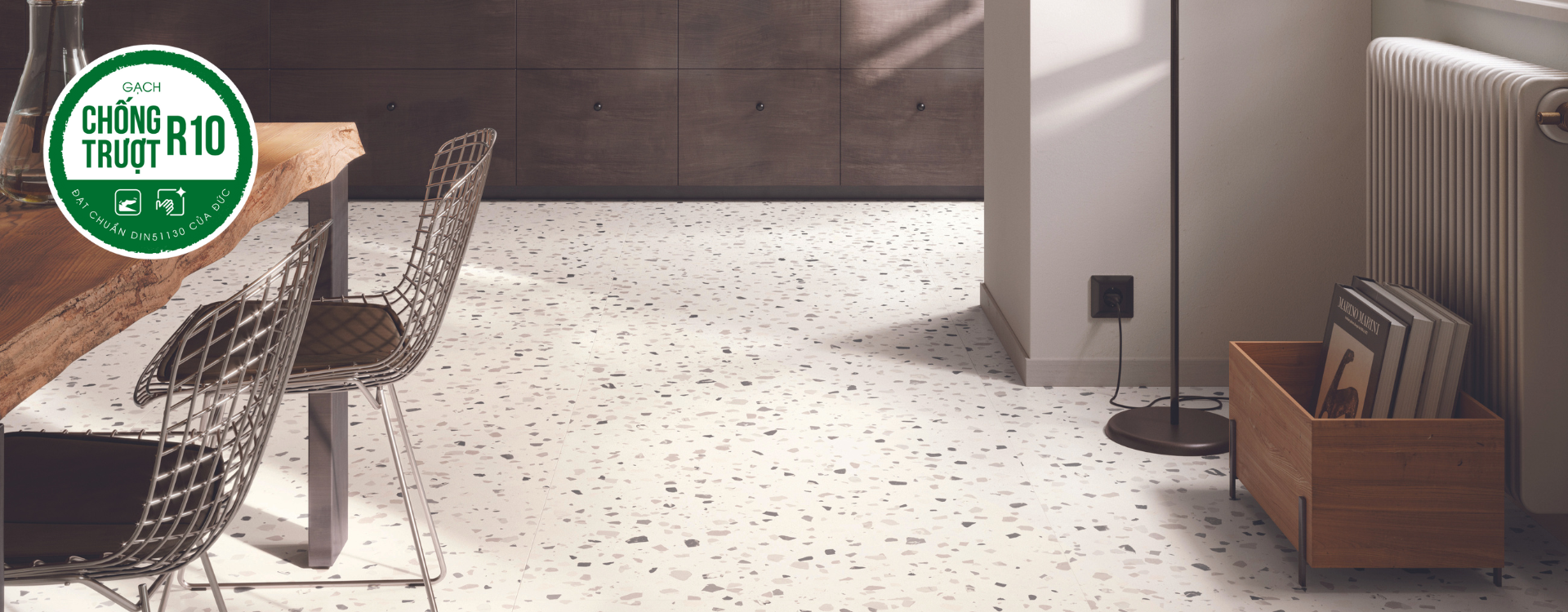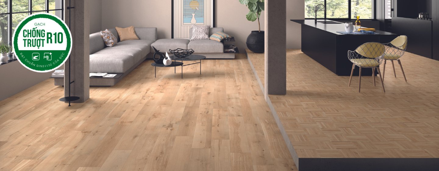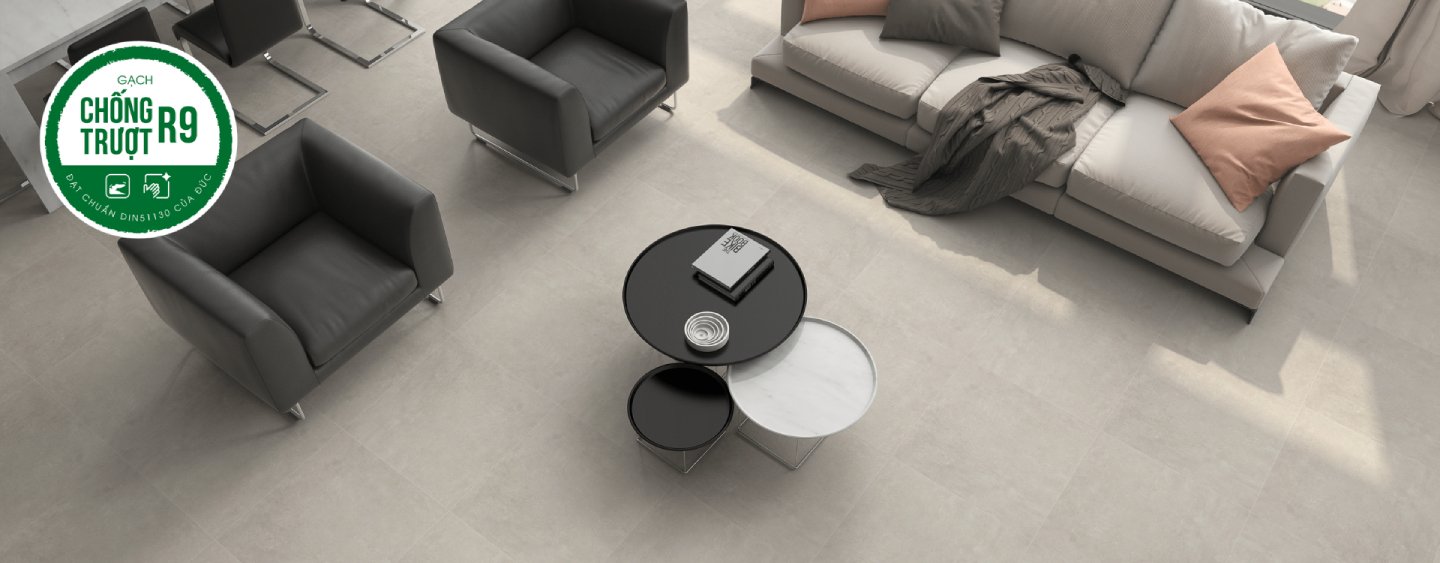 Một ngôi nhà được thiết kế thanh lịch, không gian sống hạnh phúc và bình yên luôn là điều kiện tiên quyết khi bắt tay vào thiết kế. Thực tế, ngoài tiêu chí phù hợp với kiến trúc, gia chủ còn quan tâm đến loại gạch có thể mang lại sự an toàn. Vietceramics có thể đáp ứng được mong muốn đó với các bộ sưu tập gạch với chỉ số chống trơn trượt tiêu chuẩn, đa dạng về mẫu mã và khả năng sử dụng cho nhiều không gian khác nhau. Sử dụng gạch chống trơn trượt lát nền giúp đảm bảo an toàn tại các khu vực có mật độ di chuyển cao, bề mặt thường xuyên tiếp xúc với nước, dầu mỡ như phòng tắm, nhà vệ sinh, phòng bếp, sân vườn, bể bơi. Đặc biệt, với các gia đình có người già và trẻ nhỏ, việc lựa chọn gạch lát nền chống trơn trượt là giải pháp tối ưu để đảm bảo an toàn cho mọi thành viên trong gia đình. Dưới đây là tổng hợp bộ sưu tập gạch ốp lát tại Vietceramics, nổi bật với tính năng chống trơn trượt tốt cho cả trong nhà và ngoài trời, giúp bạn có thêm ý tưởng thiết kế không gian sống theo ý muốn.