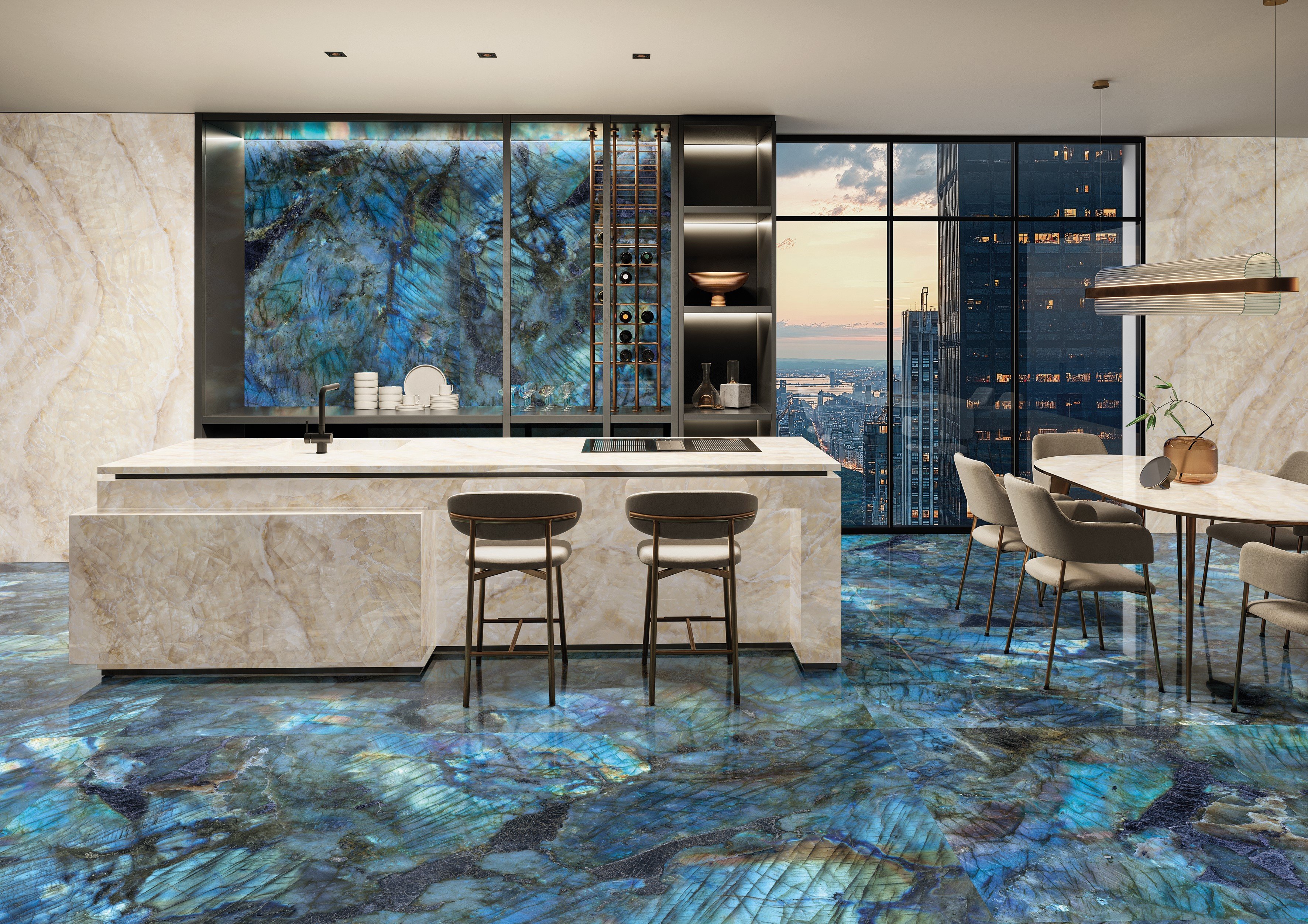 Để có thể tạo nên một sản phẩm vừa có họa tiết đặc sắc như đá xuyên sáng, vừa có thể đón bắt ánh sáng trên diện tích rộng như gạch bóng gương, một nhà chế tác gạch tại Ý đã khám phá nhiều mẫu đá quý độc đáo như xà cừ và hổ phách. Họ đã cắt xẻ từng lớp tinh thể để nghiên cứu khả năng tán xạ của đá, rồi tìm cách tái hiện lại bằng kỹ thuật in ấn đỉnh cao. Từ đây, họ đã tạo nên một dòng sản phẩm mới: Gạch hiệu ứng ánh sáng.