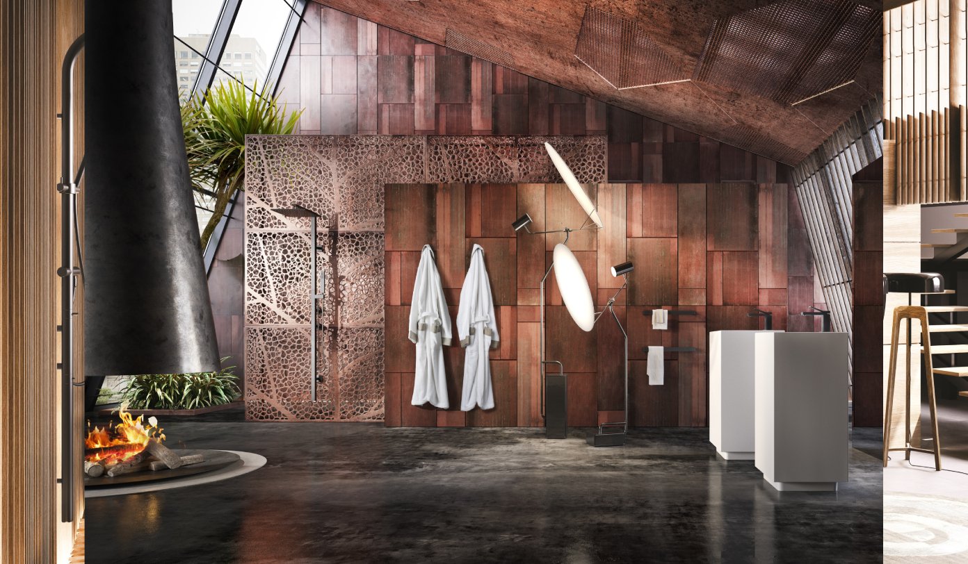 Thiết kế phòng tắm đòi hỏi việc định hướng về phong cách sống, lối sống hưởng thụ, thư giãn hơn là việc chú trọng nhiều nội thất không cần thiết. Năm 2021, với xu hướng màu Brave New World đi đôi với tông màu ấm, thiết kế cảm hứng từ gỗ và các đường nét tinh tế, cùng các chất liệu màu sắc đồng thau, đen, vàng như vòi nước hay sen tắm. Những thiết kế màu sắc này hứa hẹn sẽ đem đến một sắc thái mới, độc đáo, linh hoạt và phù hợp hơn với thời đại.