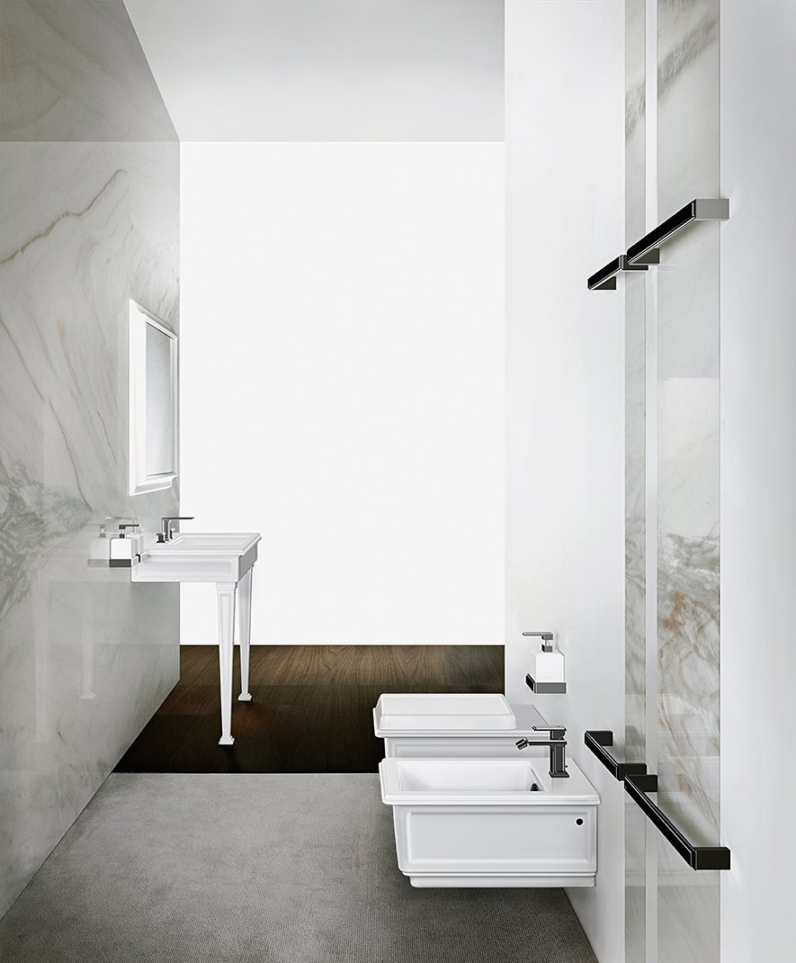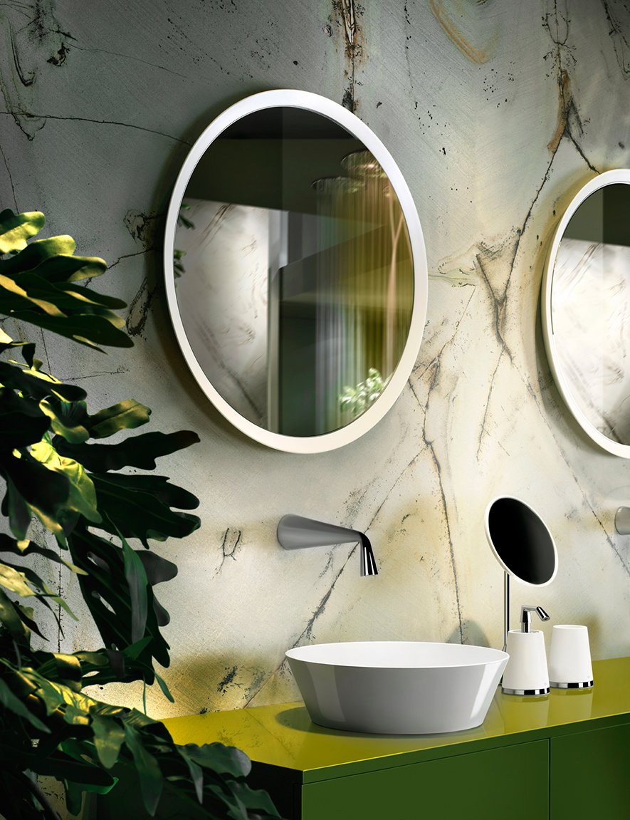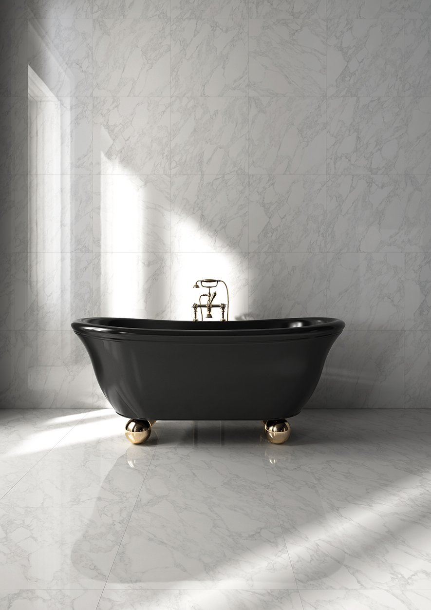 Bạn hãy tưởng tượng một không gian phòng tắm nổi bật với đá cẩm thạch màu trắng Carrara, nơi bạn sẽ thư thái thả mình trong chiếc bồn tắm sang trọng hoặc sẵn sàng cho một ngày mới với chiếc gương ấn tượng. Chắc chắn rằng, bất kể hình dạng hay sắc thái phòng tắm trong mơ của bạn như thế nào, mọi chi tiết từ chất lượng hàng đầu đến nét thủ công tinh xảo đều mang đậm đường nét thiết kế thanh lịch của người Ý.