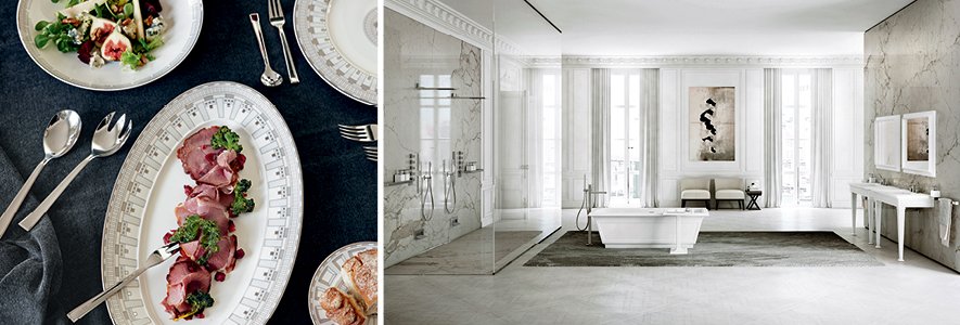 Hoặc nếu bạn thích nét ấn tượng độc đáo của kiến trúc cổ điển, bạn có thể yêu thích ngay bộ sưu tập Eleganza tinh tế hay các đường nét cảm hứng phong cách của bộ sưu tập phòng tắm Finion. Các đường nét trang trí tinh tế và thời trang của bộ sưu tập bàn ăn La Classica Contura, được chế tác từ chất liệu sứ xương cao cấp, các đường nét vẽ trang trí ấn tượng chắc chắn sẽ đem đến một không gian sống trang nhã và tinh tế.
