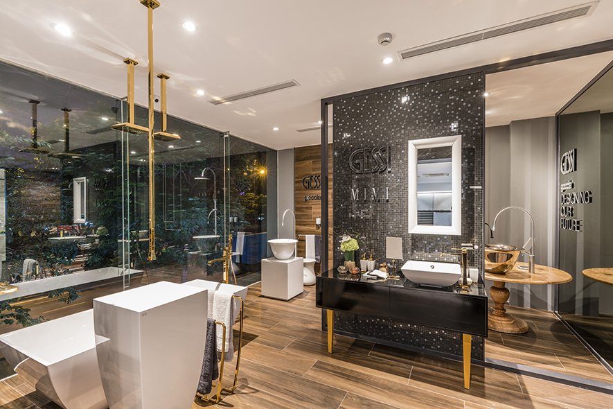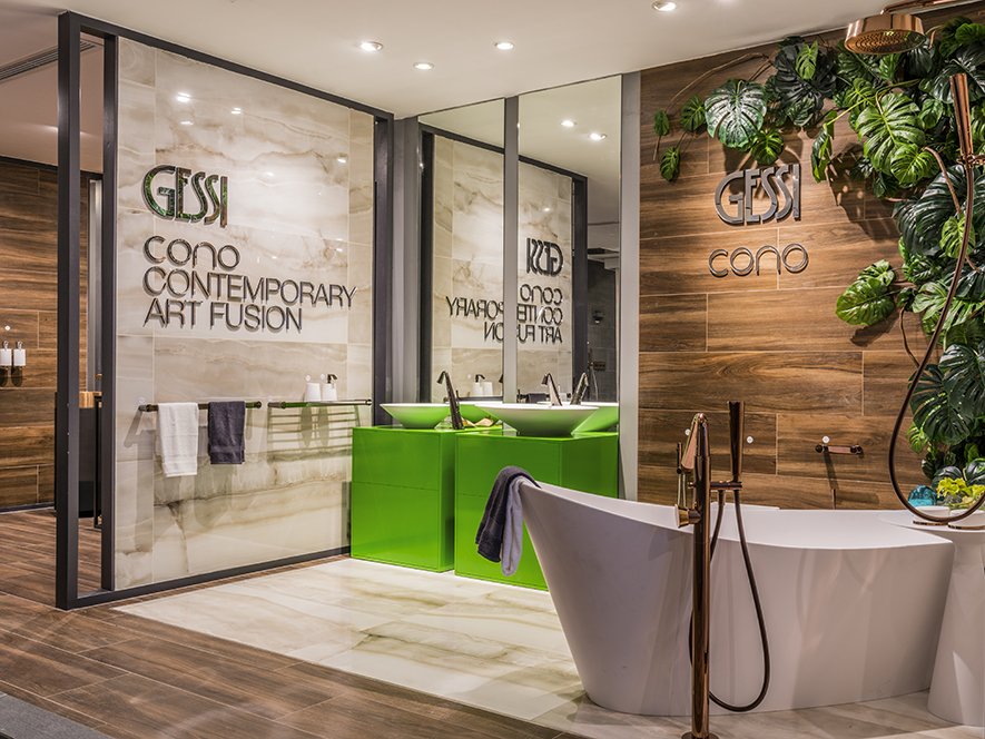 Các không gian phòng tắm được thiết kế với các phong cách riêng biệt, đầy cảm hứng và sáng tạo, từ hệ thống phòng tắm Private Wellness với các giải pháp toàn diện bao gồm vòi sen, sen tắm, thác nước, phun nước mát-xa hoặc phun sương tuyệt đẹp, cùng liệu pháp chromo tuyệt vời, trải nghiệm chăm sóc sức khỏe hoàn hảo với công nghệ JetPaksTM của Bồn tắm massage Silence, hay Cono với cảm hứng thiết kế hình nón ấn tượng, hoặc phong cách cá nhân tinh tế của Gessi 316 với chất liệu thép không gỉ đặc trưng, phong cách Art Décor của phòng tắm Eleganza đến thiết kế cá tính và tinh tế của phòng tắm Finion.