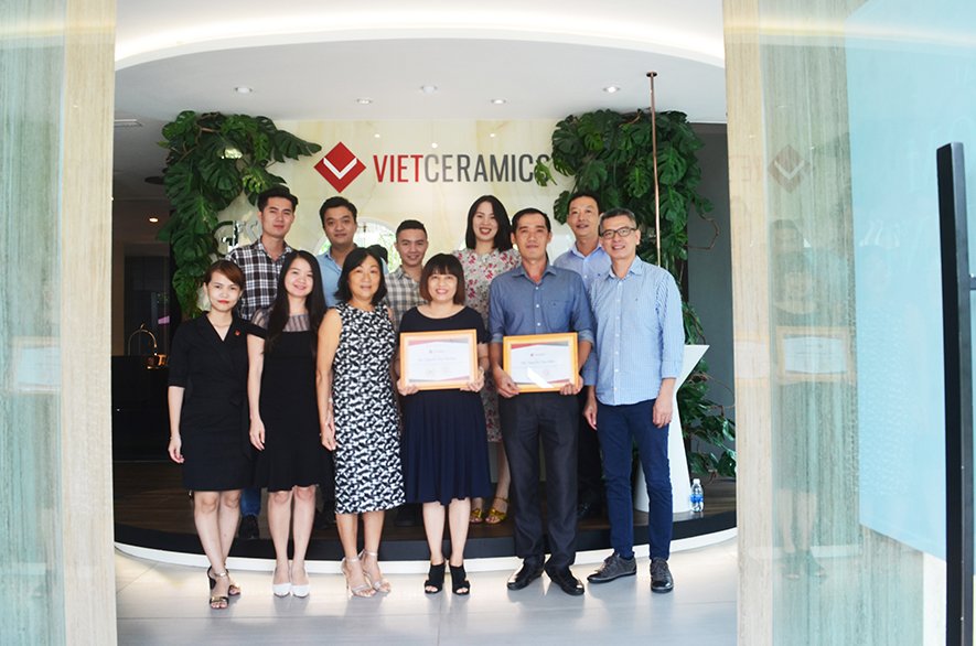 Vừa qua, tại hai showroom mới nhất, 65 Song Hành (TP Hồ Chí Minh) và 15B1 Nguyễn Khánh Toàn (Hà Nội) , Vietceramics đã tổ chức Lễ tuyên dương Nhân viên xuất sắc tháng 7. Đây là hoạt động diễn ra hàng tháng của Vietceramics nhằm khen tặng và vinh danh những cá nhân có thành tích làm việc xuất sắc, đạt hiệu quả, năng suất cao trong công tác kinh doanh.