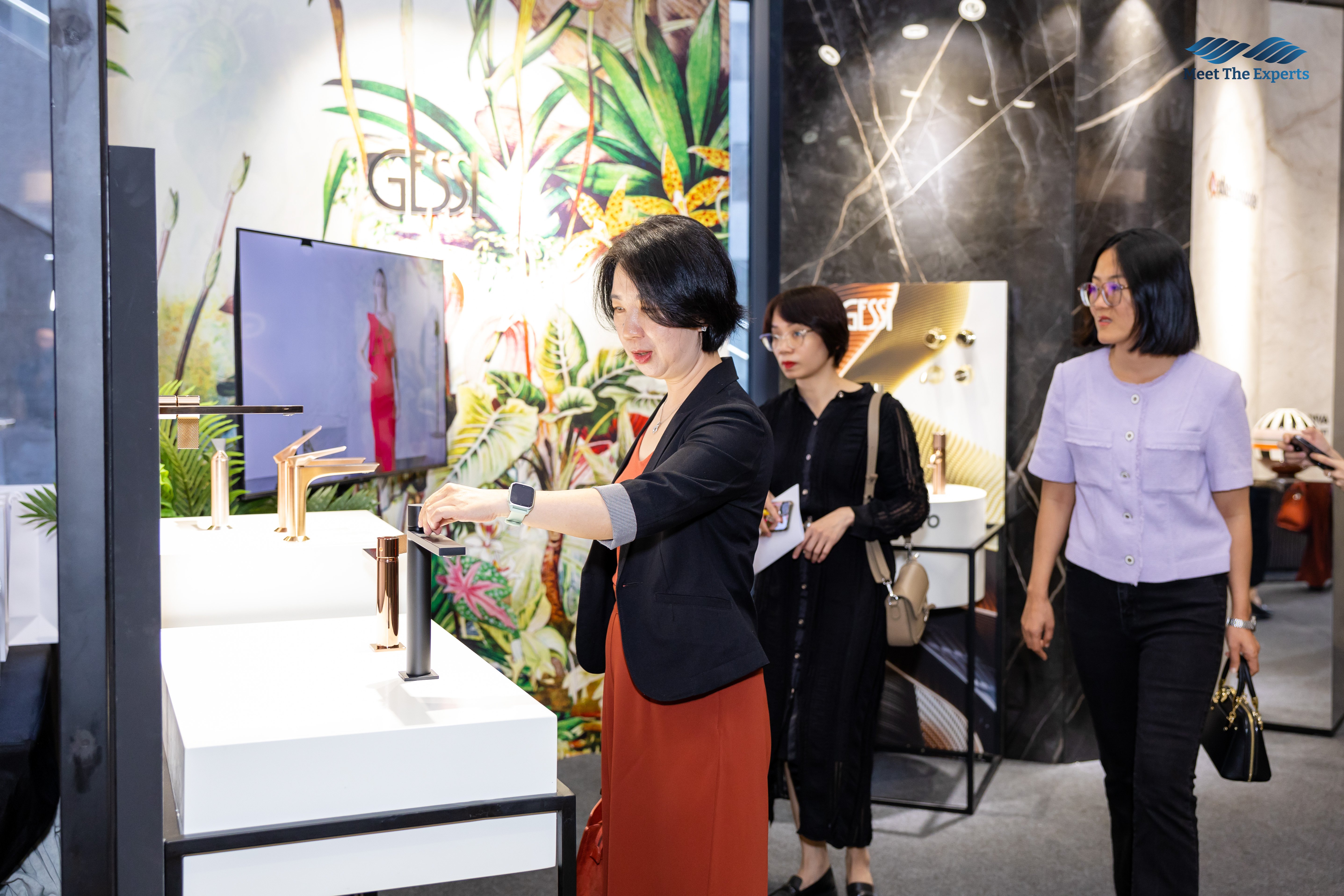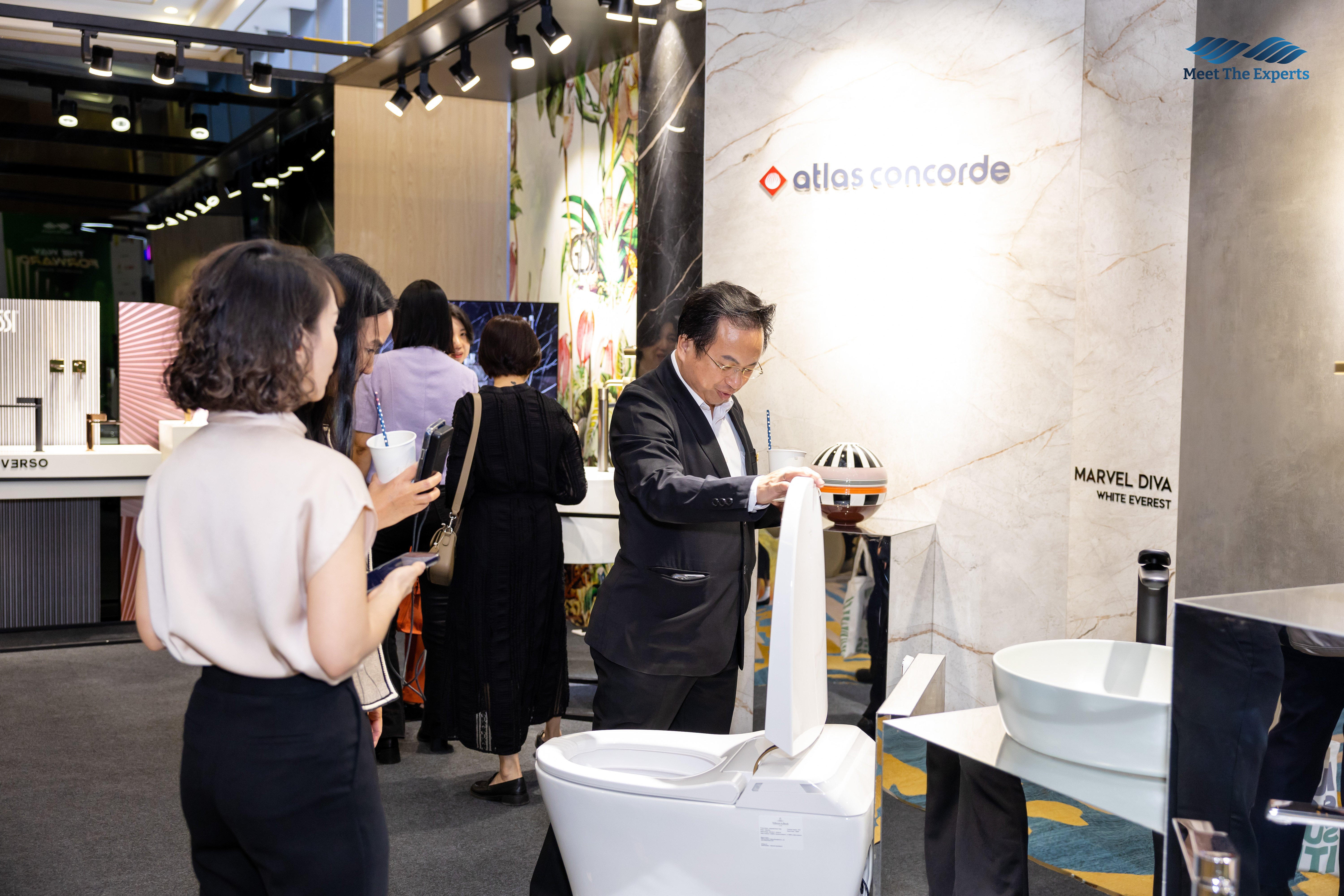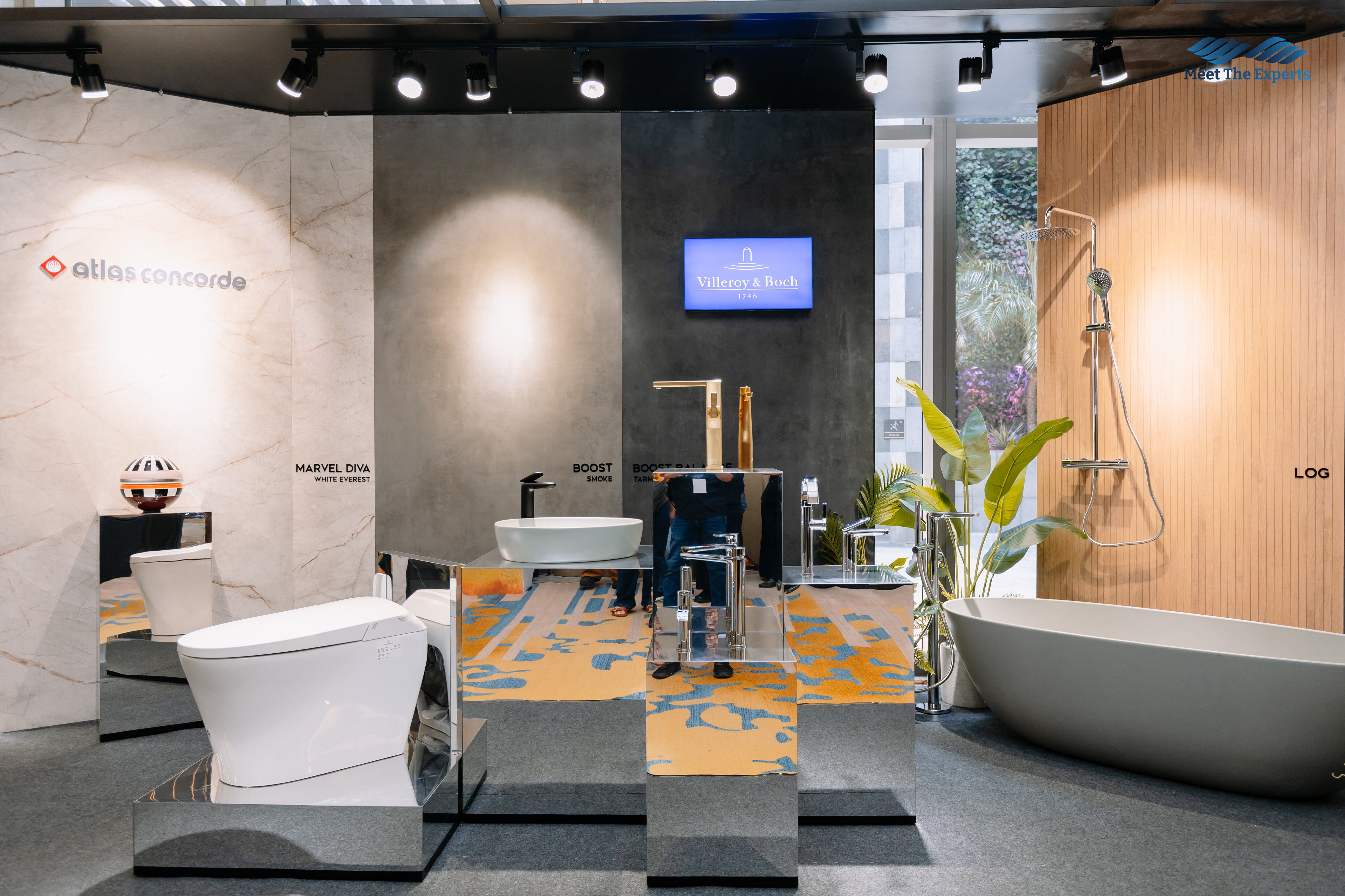 Là đơn vị đồng tổ chức Meet The Experts 2025, không gian trưng bày của Vietceramics tại sự kiện có diện tích 27m2. Tại đây phô bày trọn vẹn vẻ đẹp độc đáo của các bộ sưu tập gạch ốp lát và nội thất phòng tắm. Mỗi bộ sưu tập đều được tuyển chọn kỹ lưỡng từ ba đối tác của Vietceramics gồm Atlas Concorde, Villeroy & Boch và Gessi, tiêu biểu cho những xu hướng kiến trúc mới nhất hiện nay.