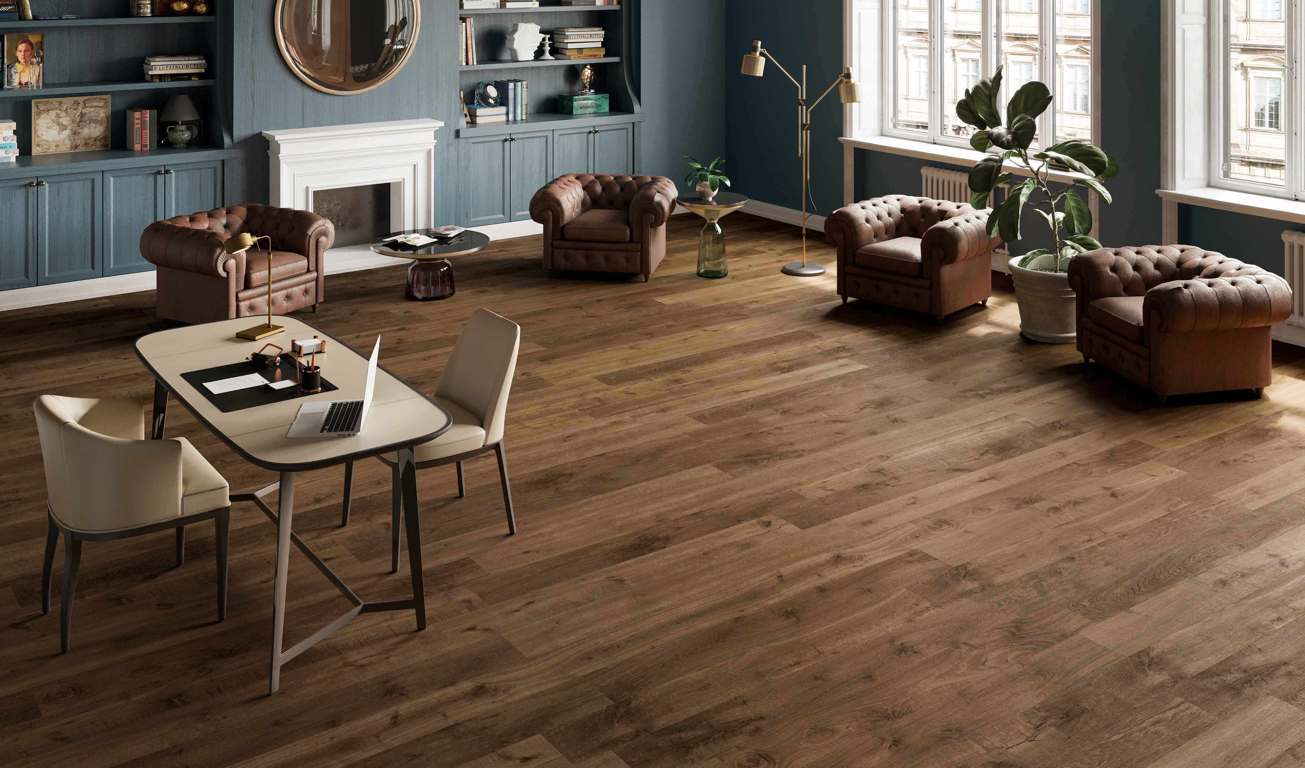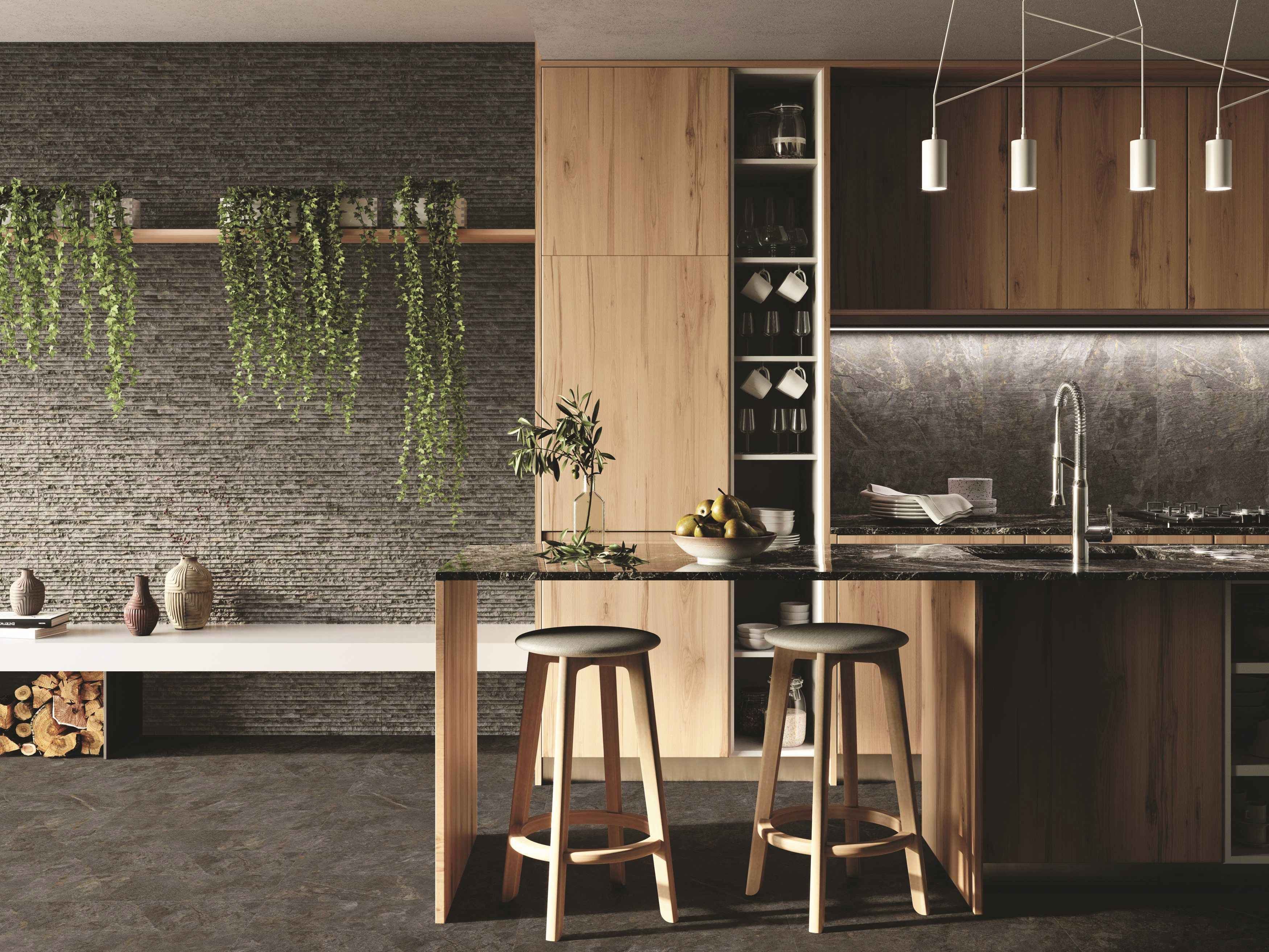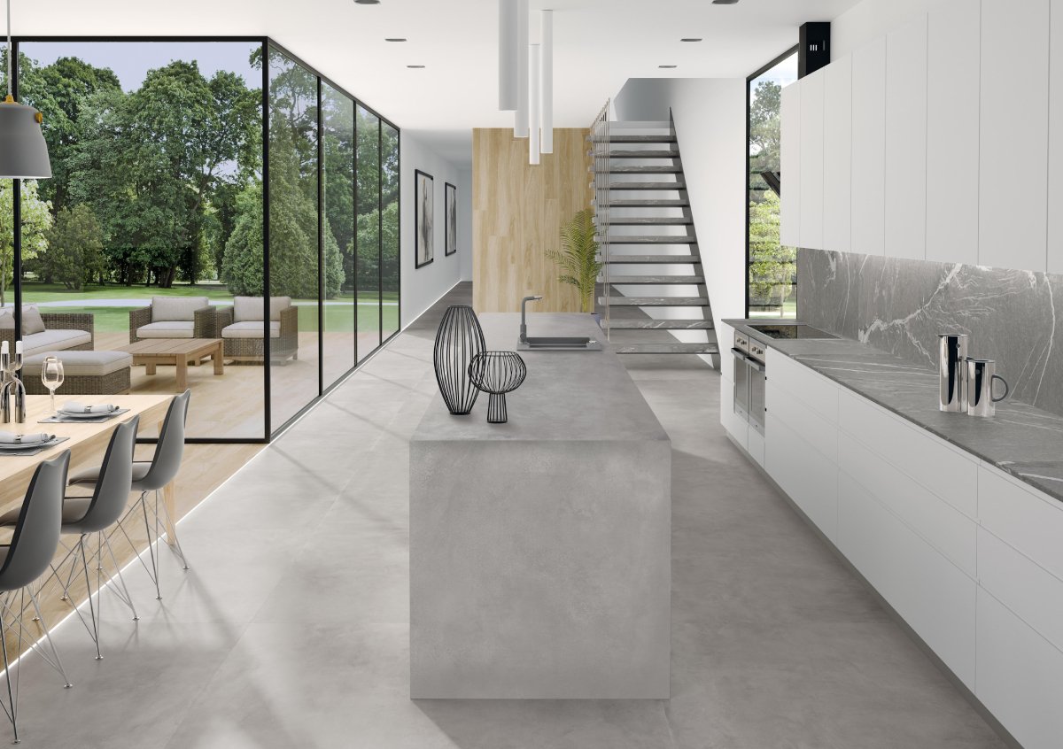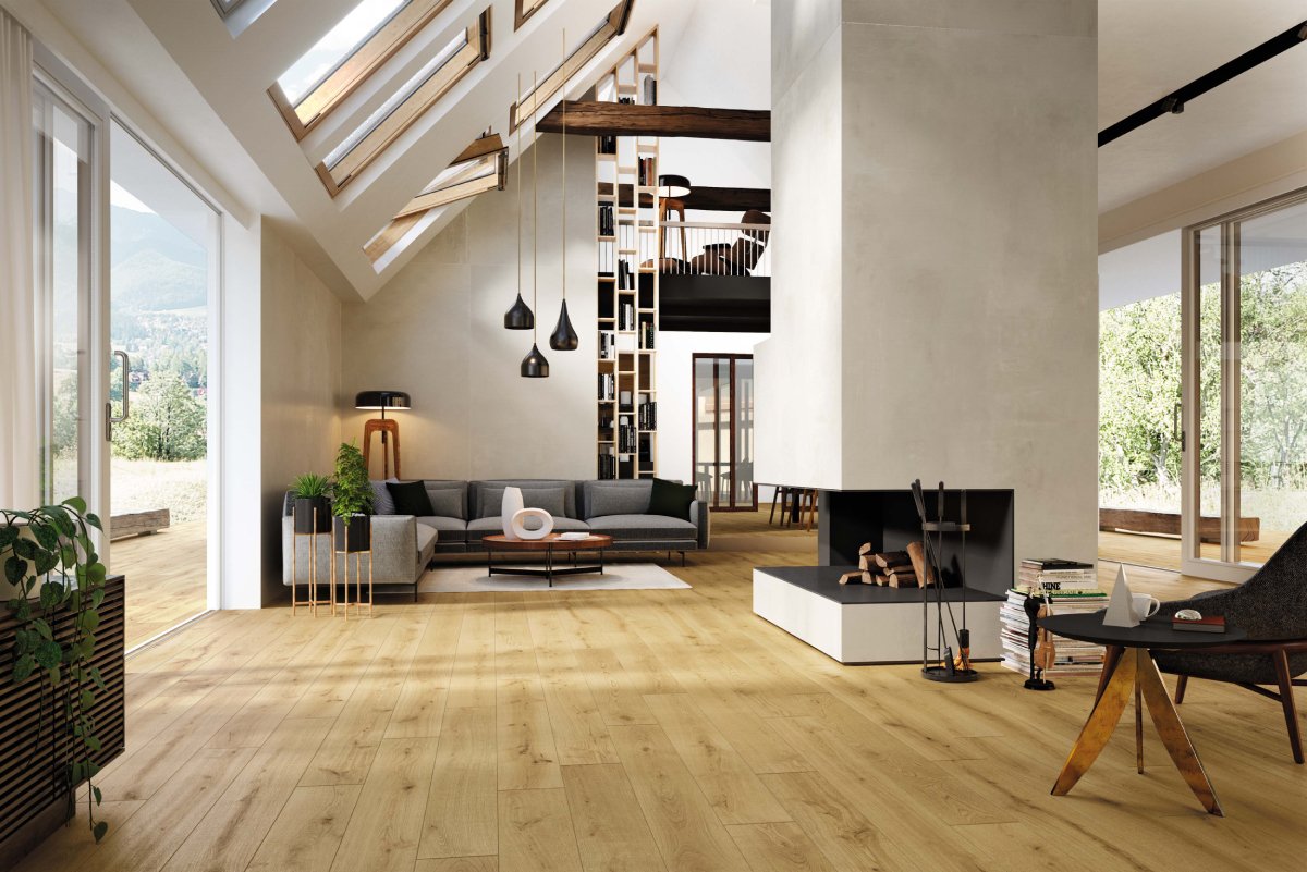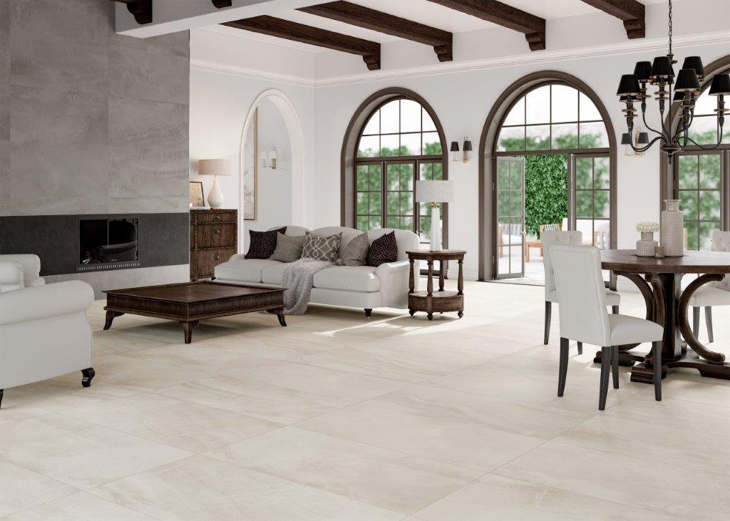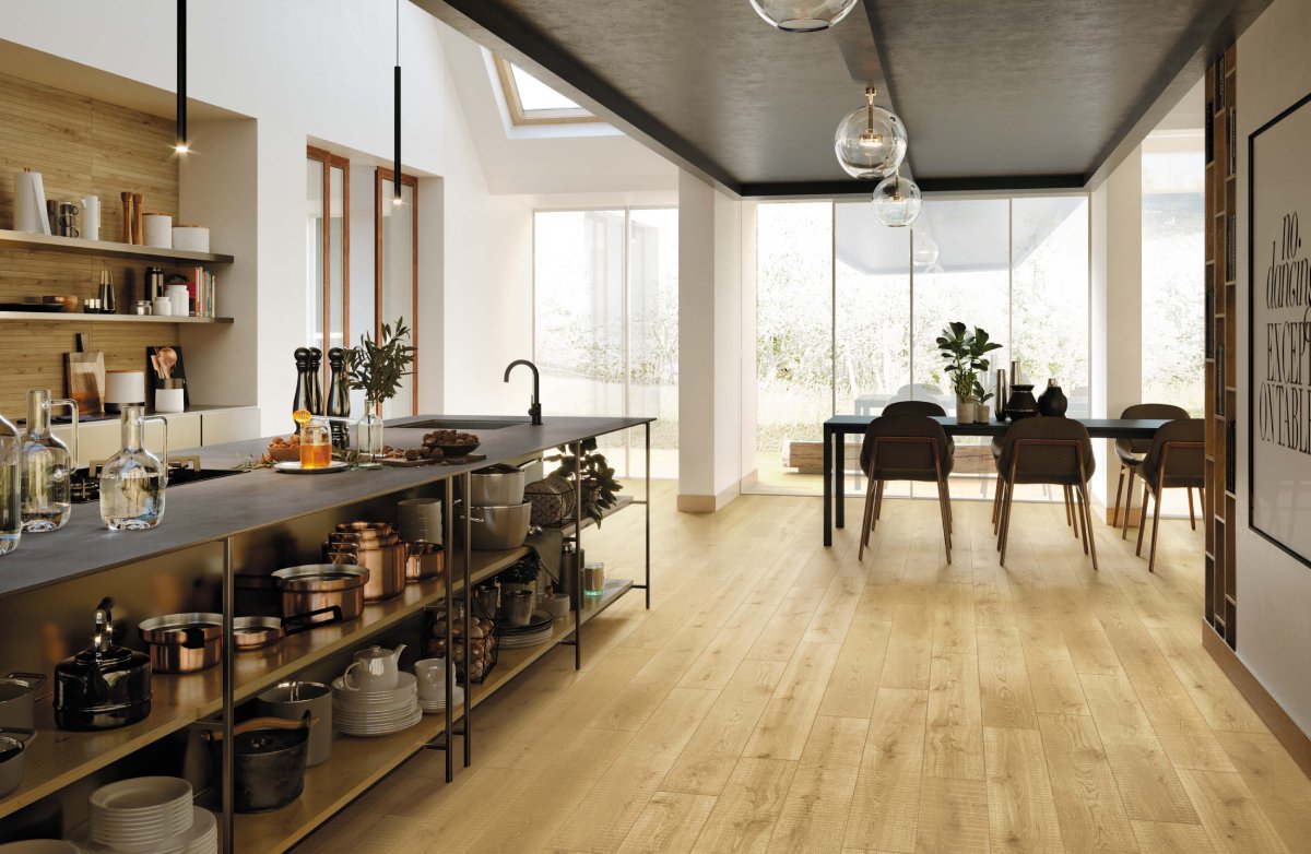 Nếu xu hướng thiết kế ngày nay ưa chuộng sàn gỗ, gạch gỗ vì khả năng đem lại sự yên tĩnh và thanh bình cho không gian, thì gạch vân đá tự nhiên, đá cẩm thạch hoặc terrazzo, cũng được lựa chọn để mang cảm giác tươi mát của thiên nhiên, đất trời vào ngôi nhà. Bạn cũng có thể phối hợp sàn gạch marble với chất liệu gỗ để tạo nên vẻ ấm áp, hiện đại cho căn phòng. Với một số khu vực như phòng ăn và nhà bếp, Vietceramics tin rằng chất liệu gỗ có thể chấm phá đơn giản mà vẫn giữ được nét hiện đại, sang trọng cho không gian.