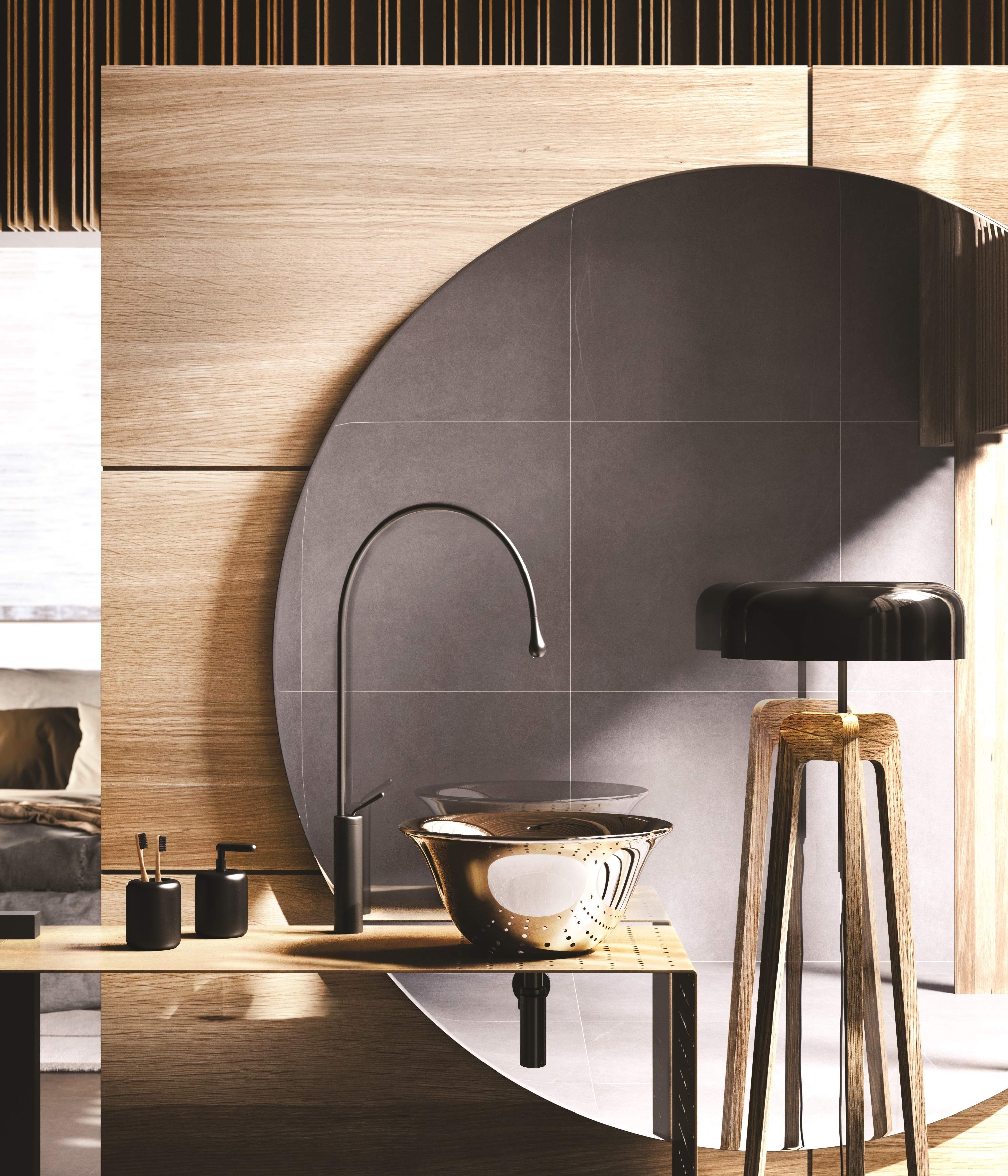 Màu sắc luôn là một yếu tố then chốt trong việc lựa chọn gạch ốp lát cũng như thiết bị vệ sinh. Gia chủ có khuynh hướng chọn các gam màu trầm tối bởi vẻ cuốn hút, sang trọng, tinh tế, đồng thời đem đến chiều sâu cho không gian. Chẳng hạn như gạch mang màu đất, với lớp bề mặt nhám tạo sự ấm áp và an toàn, trong khi đó chiếc vòi hoặc chậu rửa màu đen sẽ toát lên sự huyền bí đầy nam tính, qua đó gia chủ có thể tự do chọn màu sắc để định hình không gian phòng tắm theo cá tính riêng. Tùy vào sở thích, gia chủ cũng có thể dùng một gam màu cho nhiều vật dụng khác nhau, bởi sự sáng tạo là vô tận.