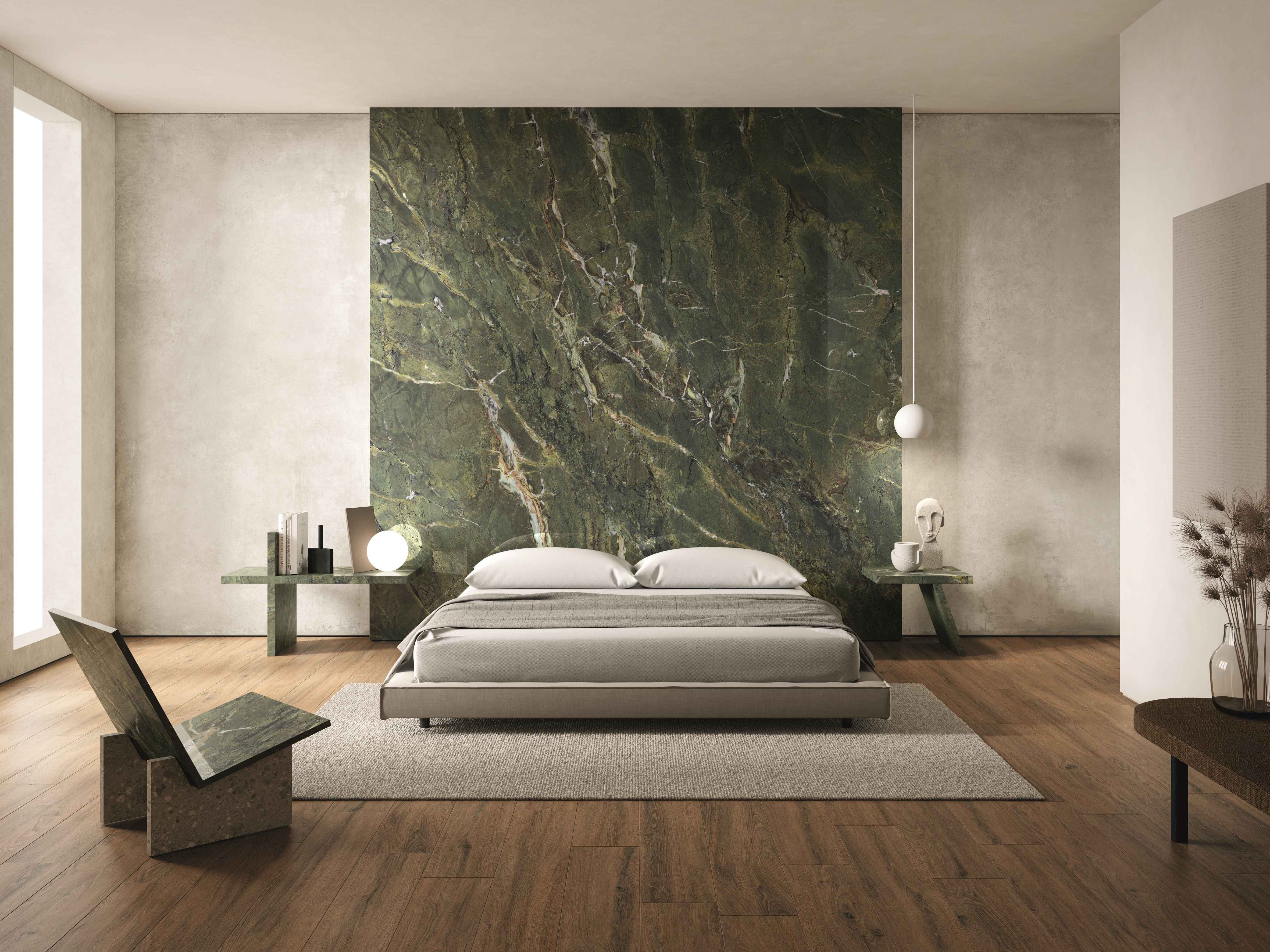 Ngoài ra, các màu tự nhiên, tươi sáng như xanh lá cây, nâu đất, màu be, xanh lam…thường mang lại cảm giác yên bình, hài hòa. Trong khi đó, gạch lát nền marble sắc xanh khi kết hợp với tường màu trung tính khác như kem, nâu, xám, cùng các đồ nội thất và trang trí bằng gỗ sẽ đem đến cảm giác tươi mát, hiện đại cho không gian sống.