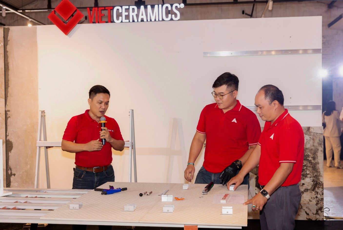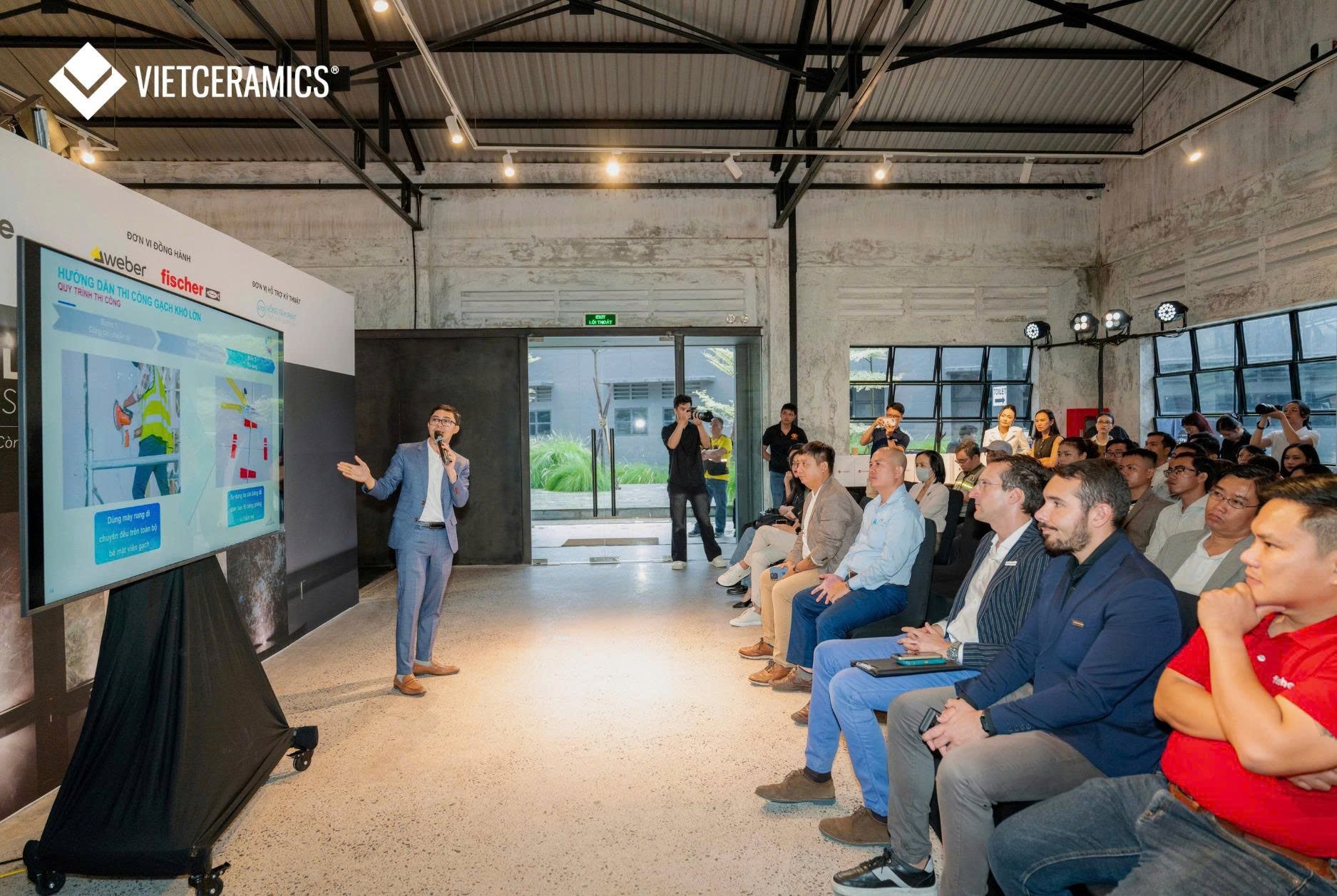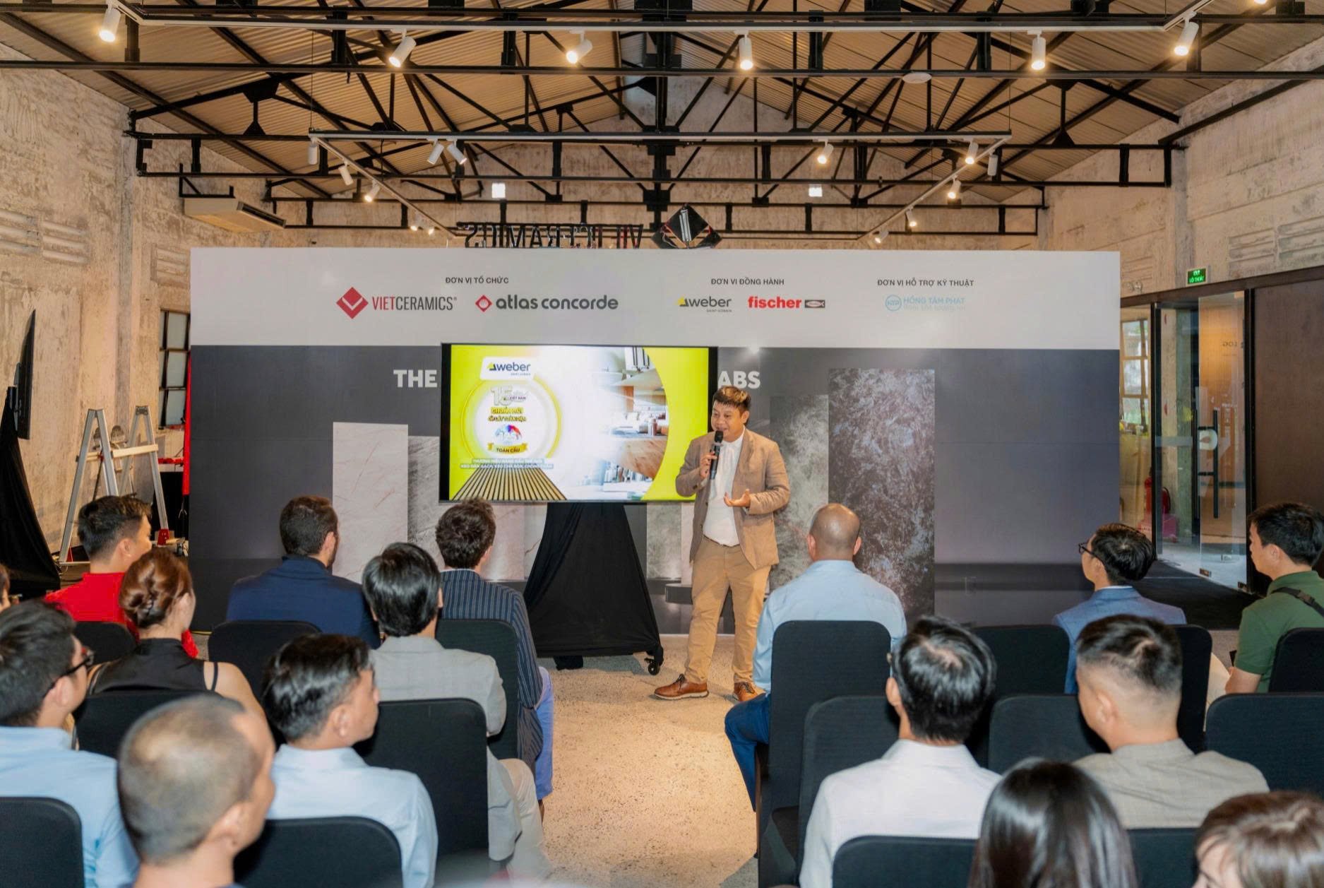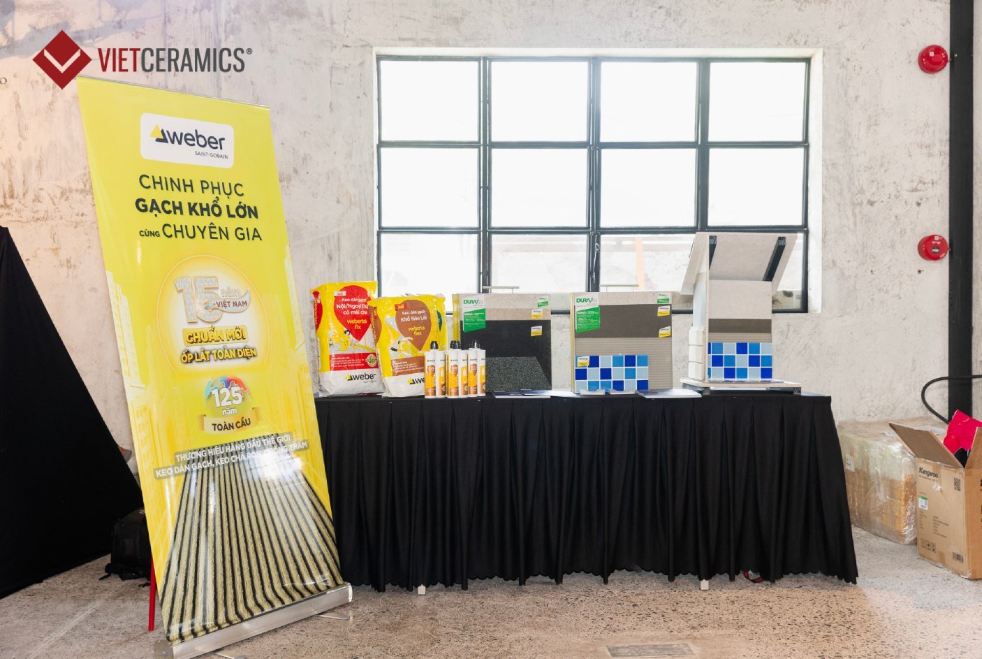 Để đem đến một workshop bổ ích, Vietceramics đã hợp tác cùng nhà sản xuất gạch ốp lát lừng danh nước Ý – Atlas Concorde, thương hiệu keo dán gạch và keo chà ron hàng đầu thế giới Weber Việt Nam, nhà cung cấp giải pháp mặt tiền tiên tiến Fischer và đơn vị thiết kế thi công Hồng Tâm Phát. Các đối tác đã mang đến những phần thực hành thi công gạch khổ lớn ngay tại workshop, giúp khách mời nắm vững hơn về sản phẩm.
