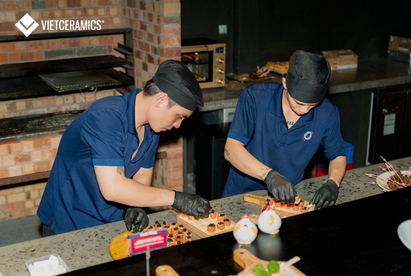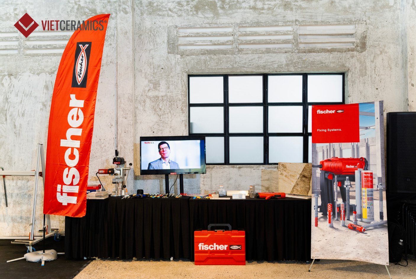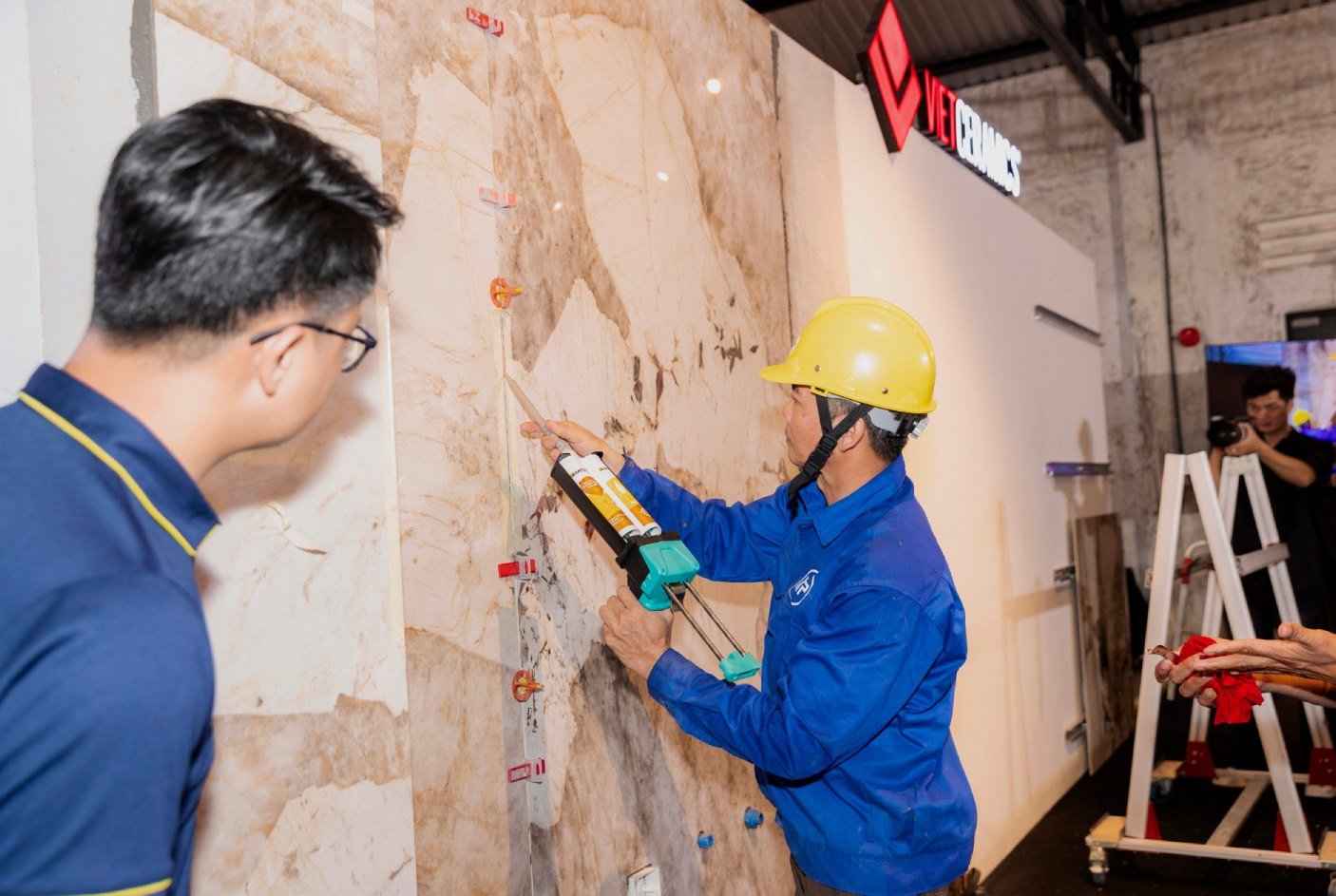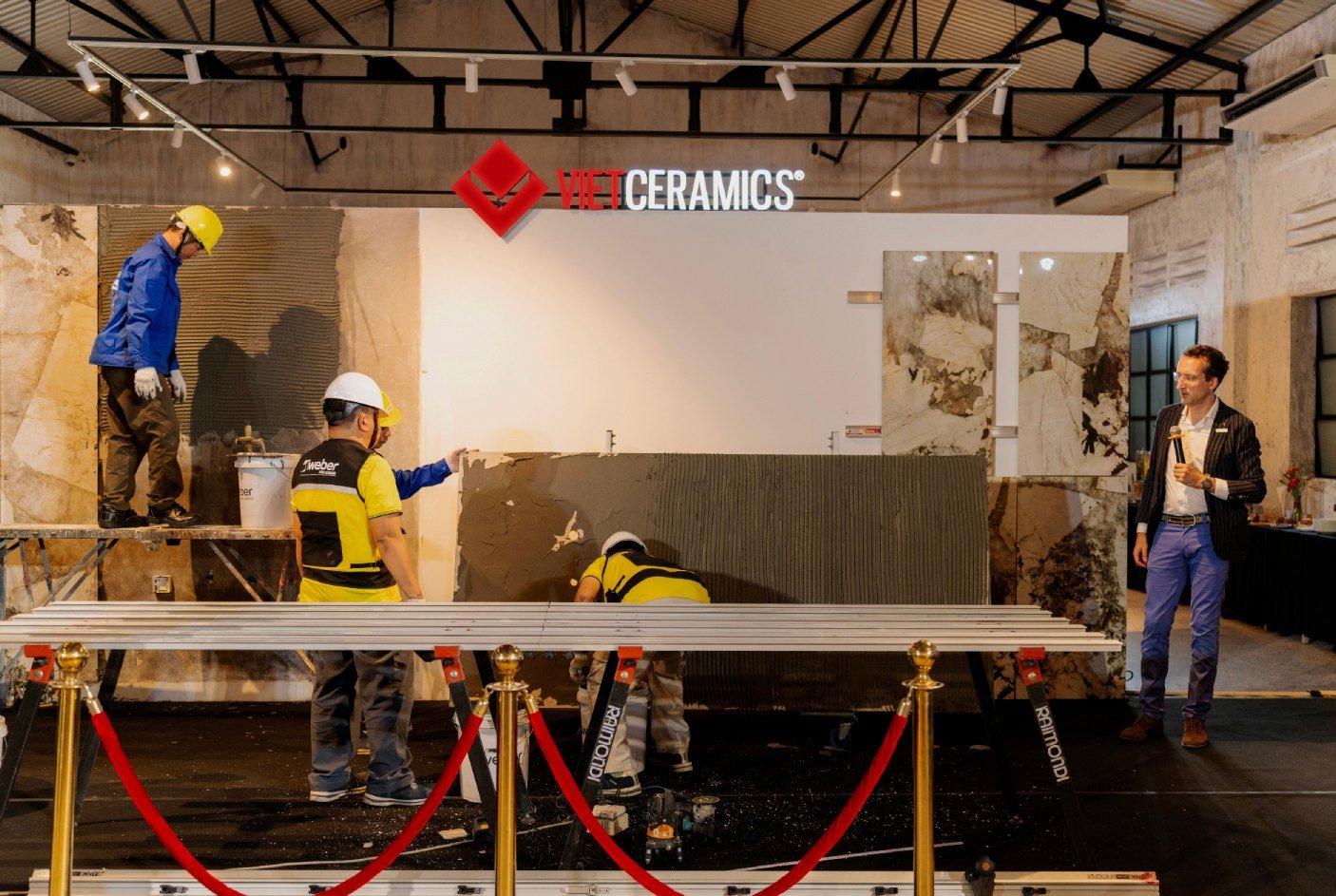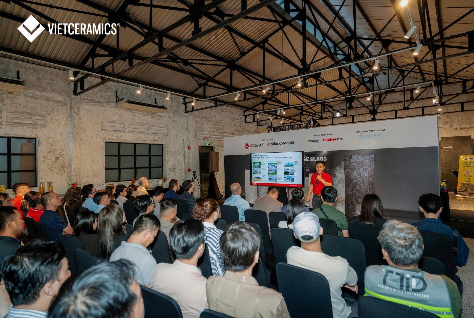 Để đem đến một workshop bổ ích, Vietceramics đã hợp tác cùng nhà sản xuất gạch ốp lát lừng danh nước Ý – Atlas Concorde, thương hiệu keo dán gạch và keo chà ron hàng đầu thế giới Weber Việt Nam, nhà cung cấp giải pháp mặt tiền tiên tiến Fischer và đơn vị thiết kế thi công Hồng Tâm Phát. Các đối tác đã mang đến những phần thực hành thi công gạch khổ lớn ngay tại workshop, giúp khách mời nắm vững hơn về sản phẩm.