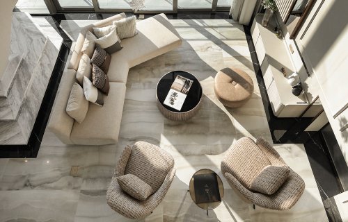 Tầng trệt, tầng 1 và tầng 2 là không gian gạch và sàn gỗ châu Âu đến từ các thương hiệu nổi tiếng hàng đầu thế giới. Khách hàng sẽ bất ngờ khi bắt gặp các vật liệu nội thất đặc sắc nhất mang đậm tinh thần Ý, như các tấm gạch khổ lớn với thiết kế vân marble lấy cảm hứng từ các mỏ đá tự nhiên đẹp nhất, hay những thiết kế kết tinh từ những khoảnh khắc độc đáo trong thiên nhiên.