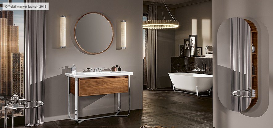 Với phong cách Art Deco pha lẫn hơi thở hiện đại, bộ sưu tập phòng tắm Eleganza lý tưởng cho bất cứ không gian nào, từ cổ điển đến hiện đại. Nếu chủ nhà muốn tăng thêm điểm nhấn cho không gian, lựa chọn màu sắc cá tính như đồng, đồng cổ, vàng bóng, vàng xước hoặc kim loại đen.