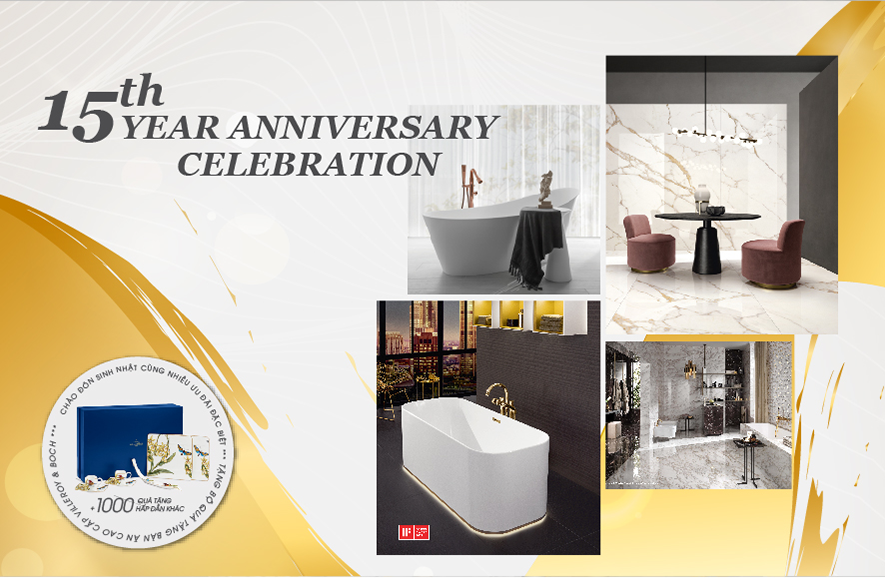 Vietceramics chính thức chào đón cột mốc đánh dấu 15 năm phát triển của một thương hiệu hàng đầu về gạch ốp lát, thiết bị phòng tắm cao cấp và sàn gỗ. Đánh dấu hành trình phát triển trong suốt 15 năm, Vietceramics sẽ giới thiệu chuỗi hoạt động kỉ niệm với những trải nghiệm đầy cảm hứng nhằm khẳng định vị thế là một trong những thương hiệu hàng đầu tiên phong trong việc mang đến những không gian sống cảm hứng, biến những ý tưởng thiết kế thành hiện thực.