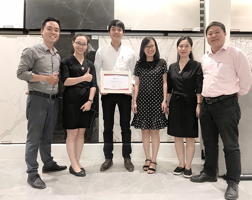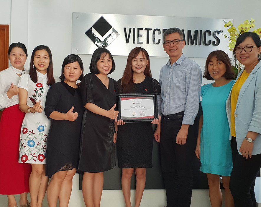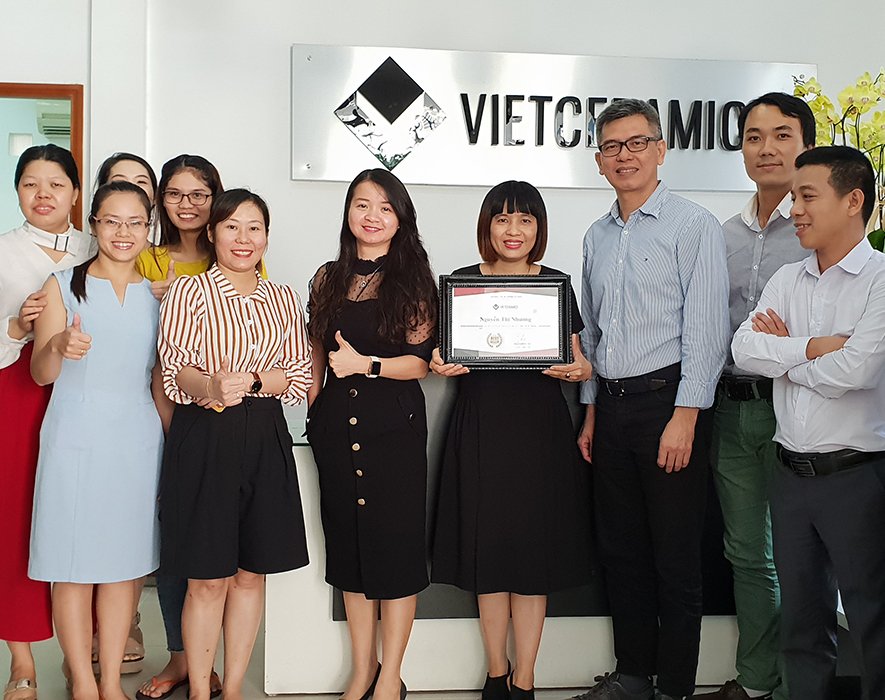 "Tôi rất hãnh diện khi lần thứ hai trở thành Nhân viên kinh doanh xuất sắc của Vietceramics. Đây là thành quả của một quá trình nỗ lực không ngừng để đạt kết quả kinh doanh tốt trong tháng.” – Đây là những chia sẻ của chị Nhường – Phòng Dự án trong buổi vinh danh diễn ra tại văn phòng công ty.