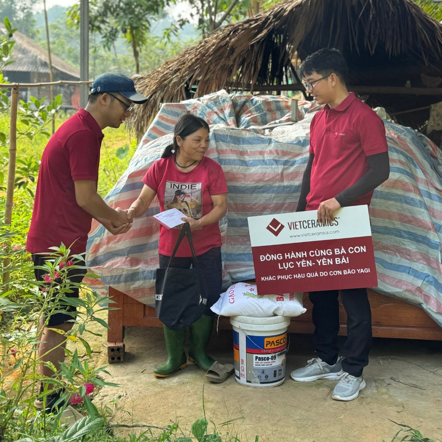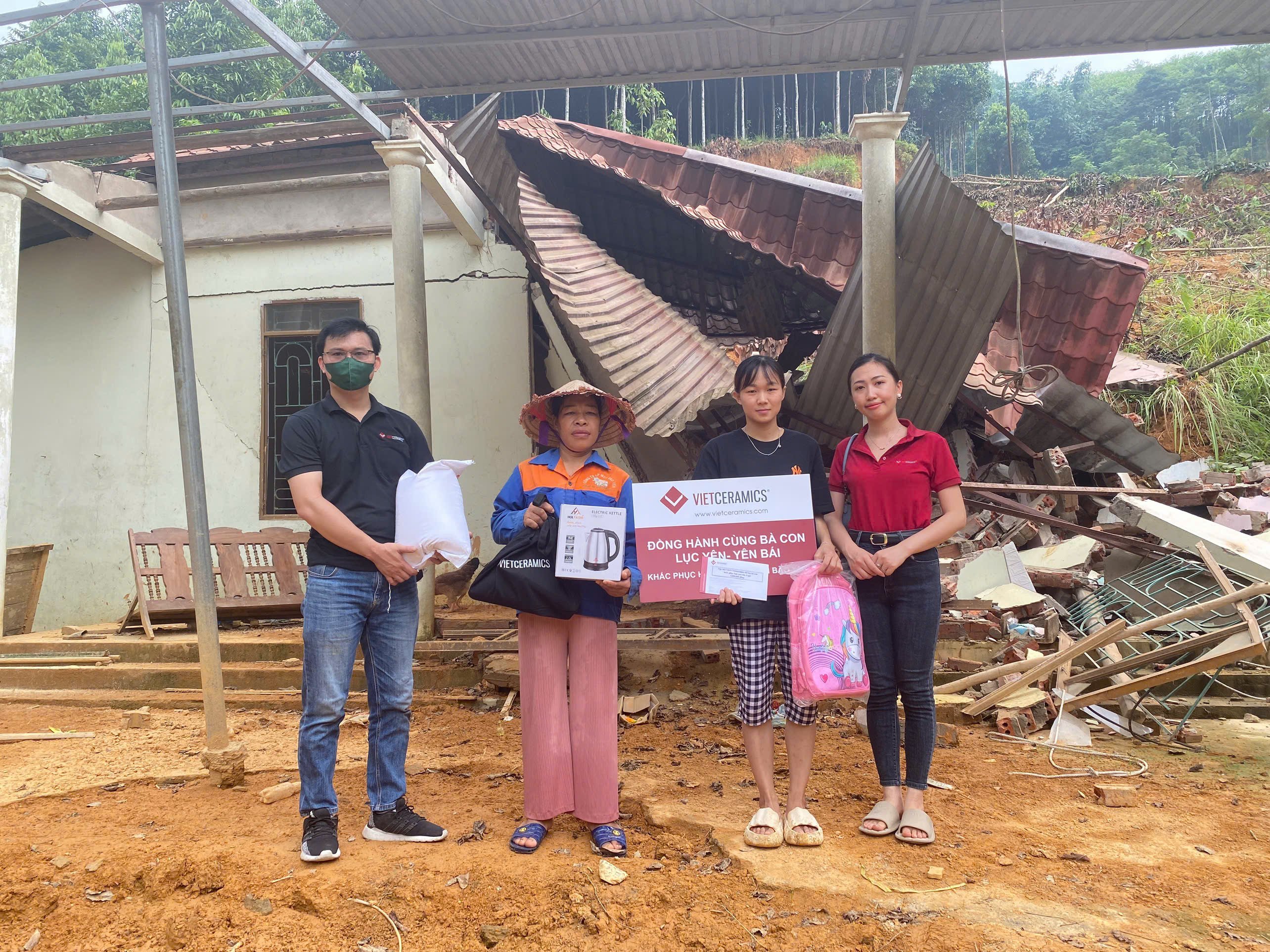Trước đó, nhân viên Vietceramics đã cùng nhau quyên góp tiền và hiện vật với tinh thần tương thân tương ái, lá lành đùm lá rách. Phối hợp cùng chính quyền địa phương, đoàn Vietceramics đã đến Làng Đung, Làng Chã, Làng Hốc và Hàm Rồng, nơi có nhiều gia đình bị thiệt hại nặng nề do lũ quét và sạt lở.